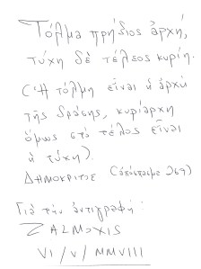 ο Δημόκριτπς έλεγε: «Άνθρωποι τύχης είδωλον επλάσαντο πρόφασιν ιδίης αβουλίης».