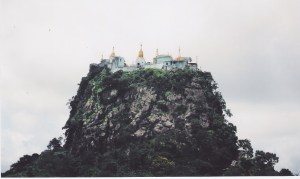 Έφυγα νωρίς το πρωί από το Bago για μια ολοήμερη εκδρομή στο Kyaiktiyo, με ένα από τα πιο άνετα μέσα που υπήρχαν στην περιοχή: στην… καρότσα ενός φορτηγού γεμάτου από ντόπιους προσκυνητές που δεν έχαναν ευκαιρία να δείξουν τον ενθουσιασμό τους –αλλά και την απορία τους- που ένας Ευρωπαίος αντί να προτιμήσει κάποιο από τα τουριστικά λεωφορεία με τους ξεναγούς ή το τραίνο προτίμησε ένα πιο «παραδοσιακό» τρόπο. Και ομολογώ πως δεν το μετάνιωσα, καθώς η ατμόσφαιρα στη διαδρομή ήταν «πανηγυρική». Αργά το πρωί είχα φτάσει στο χωριό Kyaikto και από εκεί με ένα pick up έφτασα μετά από 20 λεπτά στους πρόποδες του Kyaiktiyo. Καθώς ανέβαινα το βουνό, με έπιασε μια δυνατή βροχή που όμοιά της δεν είχα ξανασυναντήσει. Καθώς ο δρόμος ήταν ανηφορικός και τα μέσα προφύλαξης ελάχιστα, ουδόλως ενοχλήθηκα από τη ζεστή βροχή.
