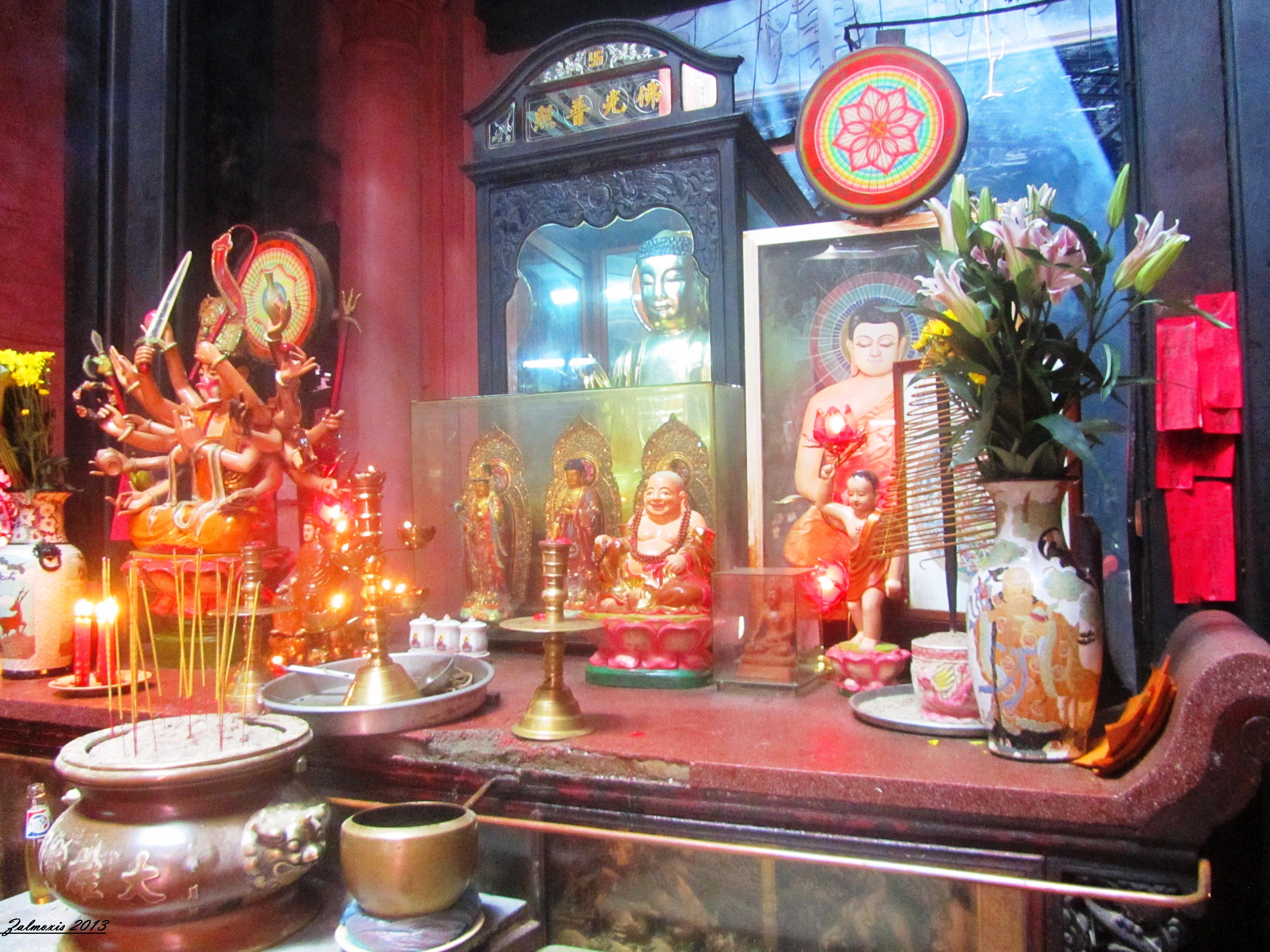 Ακριβώς μπροστά βρίσκεται ένας βωμός. Σε αυτόν λατρεύονται αρκετές θεότητες. Μεταξύ αυτών η Phat Mau Chuan De. Είναι γνωστή και ως Cundi στα Σανκριτικά και ως Kanji στα Ιαπωνικά. Το σανσκριτικό όνομά της σημαίνει «Υπέρτατη Αγνότητα». Είναι γνωστή ως Bhagavati (μητέρα όλων των Buddha) και συχνά εξισώνεται με τον boshisattva Avalokitesvara. Συνδέεται ακόμη και με την Chandi του Ινδουισμού (στον οποίο παραπέμπει αμέσως με τα πολλά της χέρια στο συγκεκριμένο άγαλμα στην Παγόδα του Αυτοκράτορα του Νεφρίτη) ενώ αποτελεί σημείο αναφορά και σε ασκήσεις του εσωτερικού Βουδισμού. Στον βωμό λατρεύονται ακόμη οι Dia Tang Vuong Bo Tat (ο bodhisattva ασκητής Ksitigartha που αποκαλείται «Γήινος Θησαυρός» και «Ομφαλός της Γης» ο Di Lac (Maitreya, ο Βούδας του Μέλλοντος) και ο Quan The Am Bo Tat. Πίσω από τον βωμό σε μια γυάλινη θήκη βρίσκεται ο Βούδας – θεραπευτής Phat Duoc Su, γνωστός και ως Βούδας Nhu Lai (λέγεται ότι αυτή η φιγούρα είναι φτιαγμένη από σανταλόξυλο).