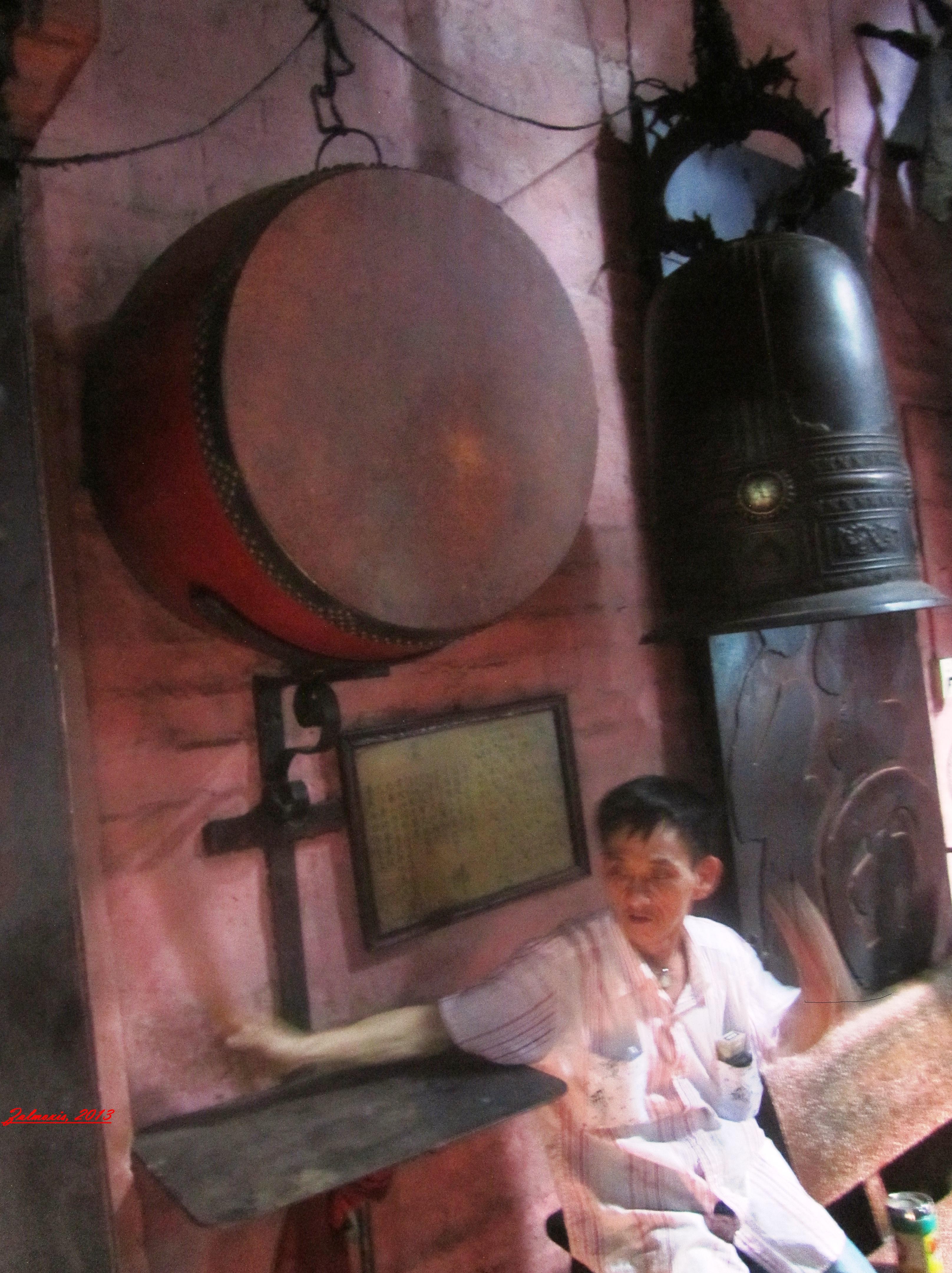 Δεξιά στην κεντρική είσοδο βρίσκεται ο Mon Quan, o «Θεός της Πύλης» σαν να παρατηρεί τους εισερχόμενους μέσα από μια ξύλινη θήκη όπου προστατεύεται και απέναντί του βρίσκεται ο «Θεός της Γης» (Theo Than).