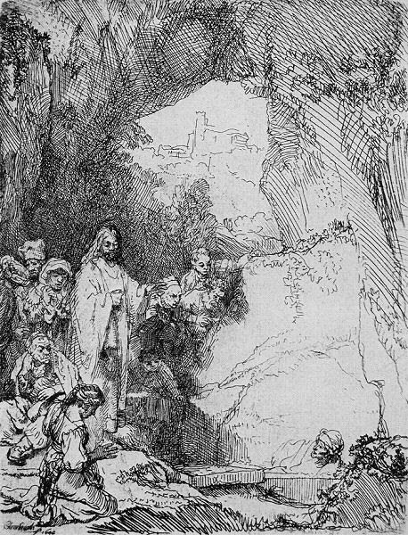 Ο Rembrandt δημιούργησε τον πίνακα στα πρώτα χρόνια της καριέρας του όπως ακόμη και δύο σκίτσα με το ίδιο θέμα: το ένα το 1632 και το άλλο το 1642. Ειδικά δε για το δεύτερο, το οποίο έχει διαφορικά πρόσωπα (του 1632 έχει πάλι το ίδιο θέμα από άλλη οπτική γωνία) εμφανίζει έναν Χριστό που μοιάζει πιο πολύ με θεραπευτή. Κάτι που δεν απέχει πολύ από την διαπίστωση της μοναχής Wendy Beckett(«αδελφή Γουέντυ») γνωστής από τις παρουσιάσεις που έκανε στο ΒΒC σειράς ντοκιμαντέρ πάνω στην Ιστορία της Τέχνης την δεκαετία του 1990, ότι το σκίτσο του 1642 παρουσιάζει ένα Χριστό – μάγο και όχι σωτήρα).