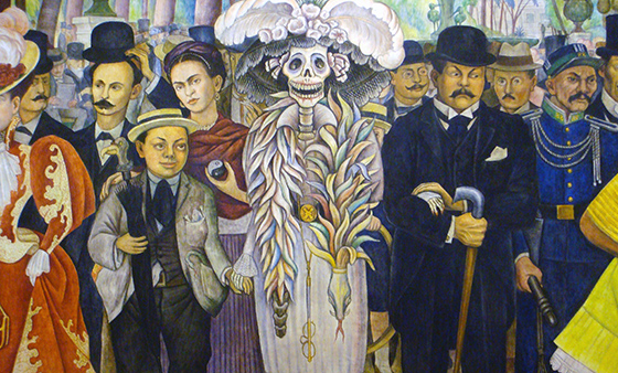 H αιματηρή ιστορία μισής χιλιετίας του Μεξικού και οι πρωταγωνιστές της απεικονίζονται σε μία και μόνο τοιχογραφία: το «Sueño de una Tarde Dominical en la Alameda Central». Είναι ιστορικά περιεκτική και εικαστικά παραστατική –παρά το στοιχείο του σουρεαλισμού που στο συγκεκριμένο έργο έχει επηρεάσει τον δημιουργό του- σε τέτοιο βαθμό γύρω ως προς την πολυτάραχη πολιτική και κοινωνική ζωή της χώρας από την εποχή του κατακτητή του Μεξικού Hernan Cortez ως τους σύγχρονους καιρούς του ζωγράφου, ώστε εύλογα να αναρωτιέται ο θεατής: ονομάζοντας την ο δημιουργός του «Όνειρο ενός Κυριακάτικου απογεύματος στην Κεντρική Αλαμέδα» εννοούσε «όνειρο» ή ειρωνικά έναν ευφημισμό για την λέξη «εφιάλτης»;