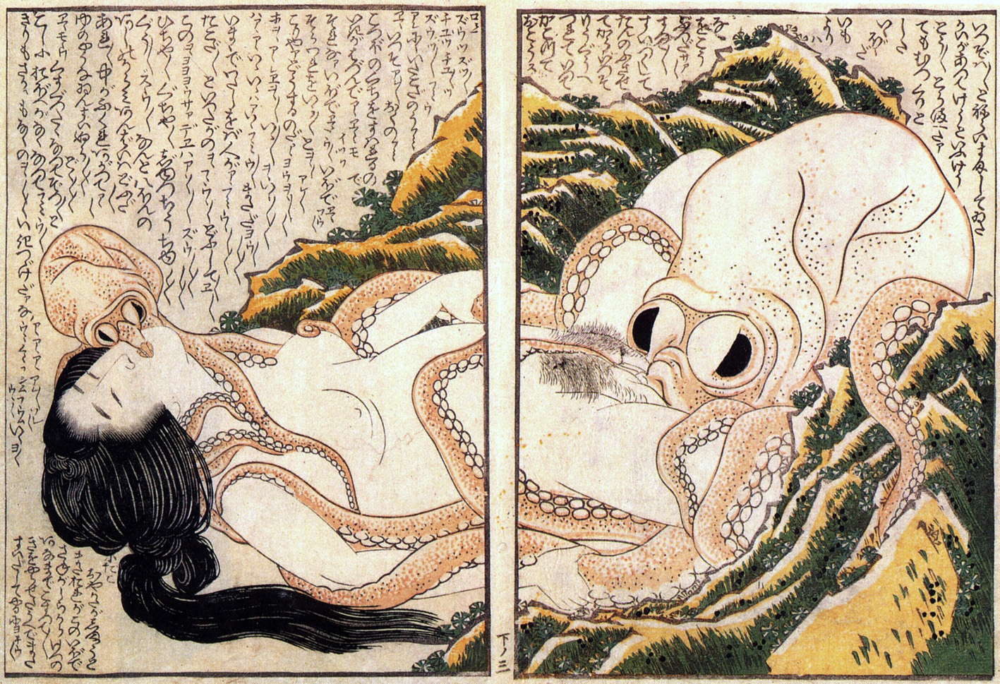 Γενικότερα όμως, αρκετούς αιώνες πριν τον Katsushika Hokusai, η σεξουαλική ένωση ζώων και γυναικών είχε αποτελέσει μοτίβο της παγκόσμιας μυθολογίας. Παγκοσμίως γνωστοί είναι οι ελληνικοί μύθοι της Λήδας και του Κύκνου ή του Ταύρου και της Πασιφάης καθώς και τα σκαλισμένα ερωτικά συμπλέγματα στους ναούς του Ινδουιστικού Ταντρισμού στο Κατζουράο, μεταξύ των οποίων και ενώσεις ανθρώπων με ζώα. Κατά κανόνα πάντως, αυτοί οι μύθοι περικλείουν και ένα τοτεμικό μαγικοθρησκευτικό στοιχείο όπου πίσω από την εικόνα, το είδωλο και εν γένει την ζωομορφική αναπαράσταση κρύβονται συγκεκριμένες ιδιότητες (γονιμικές, βλαστικές, μυητικές και άλλες) που αποδίδονταν σε κάθε θεό.