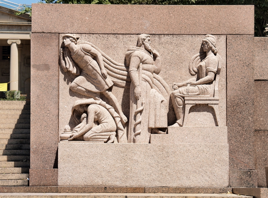 Maia, Aesculapius, Hermes & Vesta In John Gregory’s 1941 «Urban Life» Granite Bas Relief At The Municipal Center (Washington, DC)