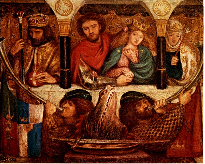 Στον πίνακα του 1862, μοντέλο είναι η Elizabeth Sidal, μόλις λίγες ημέρες πριν τον θάνατό της από υπερβολική δόση λάβδανου. Και ο Άγιος Γεώργιος -ως το alter ego του ζωγράφου- εικονίζεται να κοιτά έξω από το παράθυρο τον σκοτωμένο δράκο την ώρα που η πριγκίπισσα του φιλά τα χέρια. Είτε συνειδητοποιεί το επερχόμενο τέλος της Elizabeth είτε καταπιέζεται έχοντας κάνει ένα γάμο που κατά βάθος δεν ήθελε είτε το μυαλό του είναι κάπου αλλού. Ίσως στην Jane…