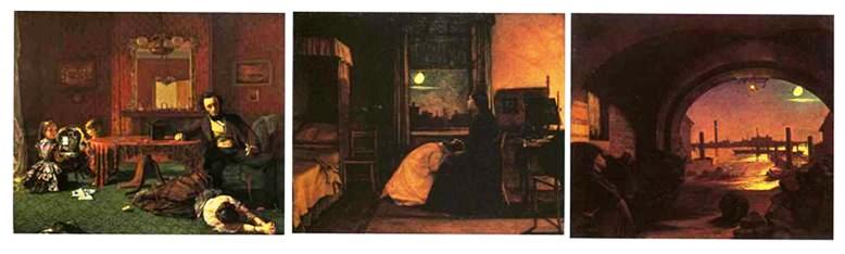 Η σειρά των τριών πινάκων που δημιούργησε ο Augustus Egg το 1858 οι οποίοι προορίζονταν να συνδυαστούν σε ένα ενιαίο τρίπτυχο (η σειρά αν και αρχικώς ήταν ανώνυμη πήρε τον τίτλο «Past and Present») έχει μια διπλή και μάλιστα αντίστροφη ανάγνωση. Από την μία πλευρά, αφηγείται τις οδυνηρές συνέπειες μιας μοιχείας. Στον πρώτο πίνακα, σε ένα μεσοαστικό δωμάτιο, ο άνδρας ανακαλύπτει την απιστία της συζύγου. Στον δεύτερο, ο άνδρας έχει πεθάνει και από την στιγμή που η νομοθεσία απαγόρευε στην μοιχαλίδα να αναλάβει την επιμέλεια των παιδιών, αυτά βρίσκονται έγκλειστα σε κάποιο ορφανοτροφείο. Και στον τρίτο πίνακα, η άπιστη σύζυγος με το παιδί του εραστή της έχει βρει καταφύγιο κάτω από μια γέφυρα στο πιο κακόφημο σημείο της πόλης.
