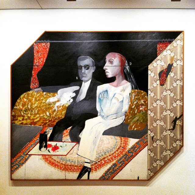 Ανάμεσα στα πολύ ενδιαφέροντα εκθέματα που είδα εκεί (κινέζικες πορσελάνες της δυναστείας των Μing, αυτοπροσωπογραφίες του Andy Warhol, ελαιογραφίες του Philip Guston, της Madeline Green και του Wyndham Lewis, γλυπτά του Jakob Epstein και του Man Ray, τέμπερες του John Armstrong και αγάλματα του Auguste Rodin) ξεχώρισα και τον πίνακα «The Second Marriage» του Άγγλου ζωγράφου και σκηνογράφου David Hockney (1937-). Ο πίνακας αυτός είναι διάσημος για αρκετούς λόγους, όπως λόγου χάριν για το οπτικό τρυκ με το οποίο ο ζωγράφος δίνει την αίσθηση τριών διαστάσεων αντί δύο ή ο κυνισμός με τον οποίον σατιρίζει τον θεσμό του γάμου.
