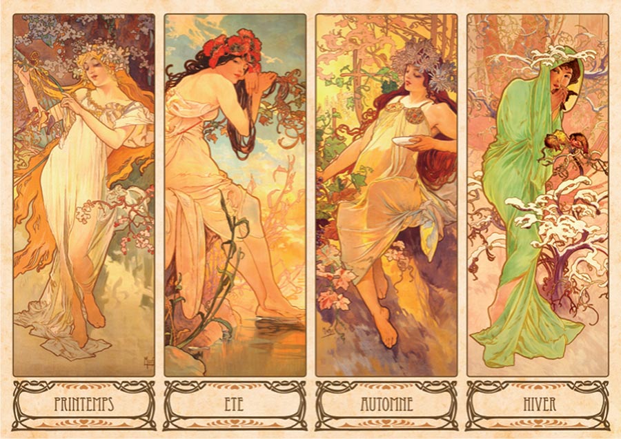 Ήταν τέτοια η απήχηση της σειράς λιθογραφιών «Εποχές» που συνέθεσε το 1896 ο Τσέχος ζωγράφος και σχεδιαστής Alphonse Mucha (δεν ήταν η πρώτη του σειρά με το θέμα αυτό, αλλά ασφαλώς η πιο δημοφιλής, ακόμη και από αυτές που ακολούθησαν) ώστε ο οίκος Champenois να του ζητήσει να δημιουργήσει ακόμη δύο σειρές με το ίδιο θέμα, το 1897 και το 1900. Παρότι παραλλαγμένου ύφους η κάθε μία, όλες οι σειρές εκπροσωπούν το ρεύμα που επί χρόνια υπηρέτησε ο καλλιτέχνης, την art nouveau.