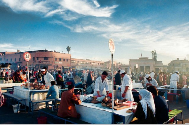 Το κακό είναι ότι όλοι σε πιέζουν να αγοράσεις. Βαριέμαι να λέω συνεχώς «no». Στο σουκ οι ποιότητες είναι καλύτερες και έχεις και τον χρόνο να διαλέξεις χωρίς τις πιεστικές προτροπές και το δήθεν «σκόντο» του πλανόδιου. Κάποτε είδα κάποια ντόπια να εμφανίζεται από το πουθενά, να αρπάζει το χέρι μιας τουρίστριας που χάζευε κάτι χορευτές και να αρχίζει να της ζωγραφίζει το χέρι. Μέχρι να συνέλθει από την έκπληξη η τουρίστρια, η Μαροκινή απαιτούσε με φωνές και αυστηρό ύφος να της πληρώσει τη χέννα.