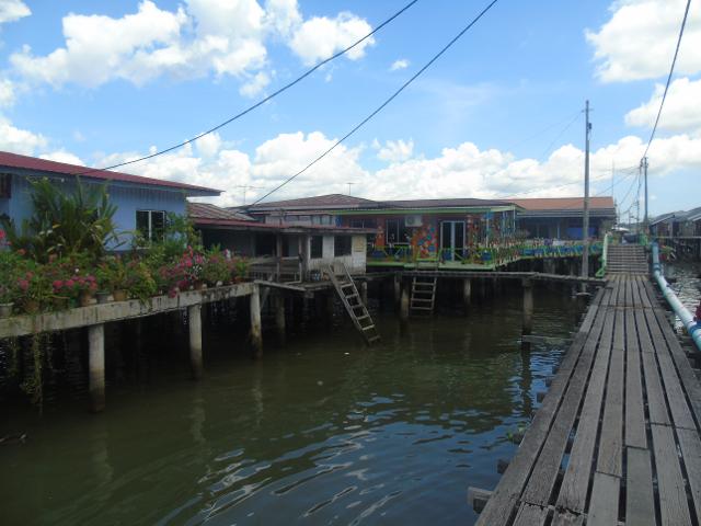 Περνούν αρκετά λεπτά προτού συνηθίσω την αίσθηση να περπατώ πάνω σε σανίδες σε μικρό ύψος πάνω από τα νερά του ποταμού που εκβάλλει στον Κόλπο του Μπρουνέι και που αυτός με τη σειρά του αποτελεί μέρος της Νότιας Σινικής Θάλασσας. Περπατώντας, αντικρίζω στα βόρεια στο βάθος την πόλη, τα ψηλά κτήρια, τα εμπορικά κέντρα και το Ιστάνα Νουρούλ Ιμάν, το μεγαλύτερο ανακτορικό συγκρότημα στον κόσμο, και από την άλλη πλευρά ένα καταπράσινο ύψωμα που συνθέτει το απόλυτο κοντράστ.