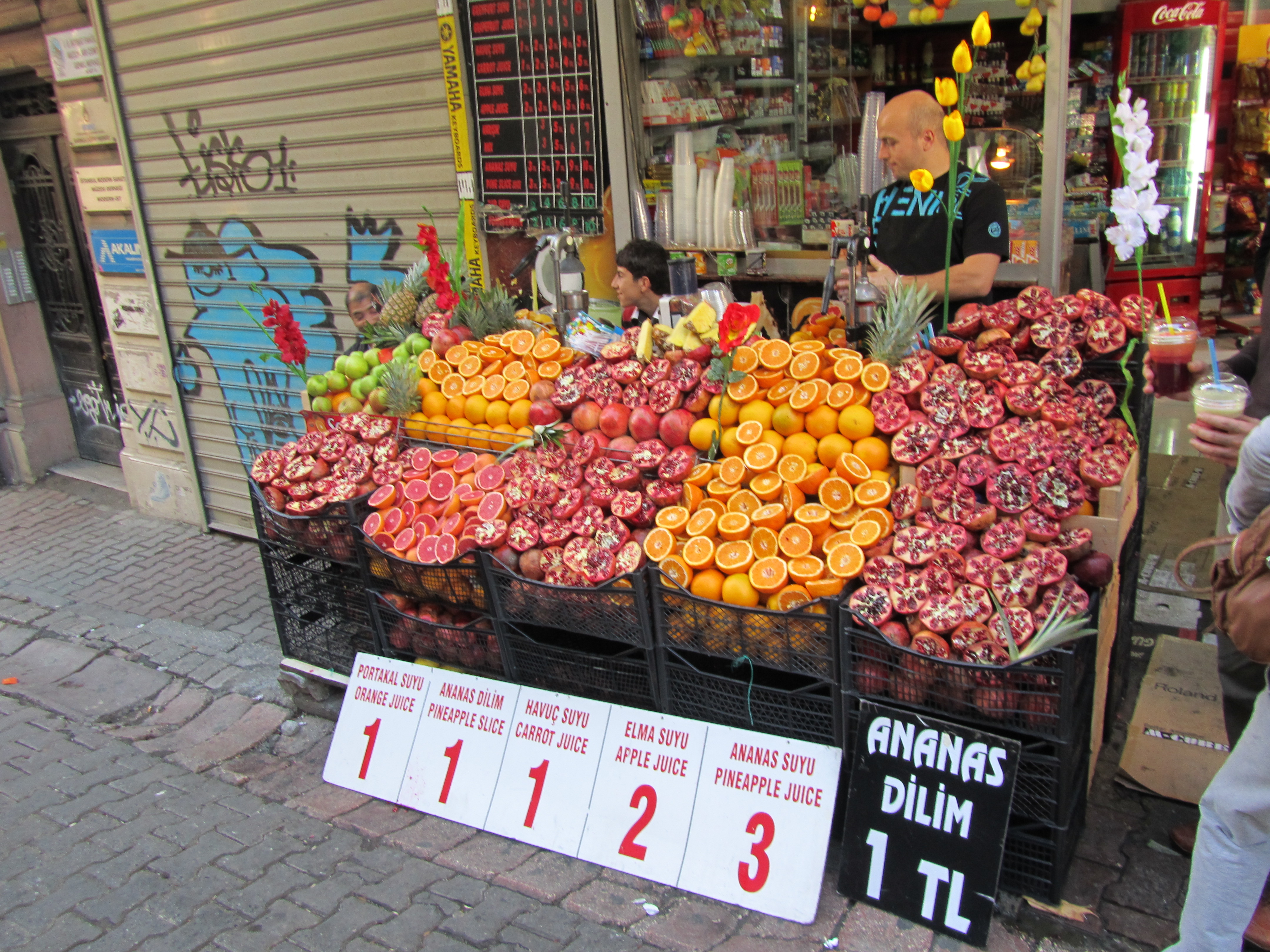 Όπως συμβαίνει σε ολόκληρο τον μουσουλμανικό κόσμο, είτε επιτρέπεται το αλκοόλ είτε απαγορεύεται, δημοφιλείς είναι οι χυμοί που στίβουν πλανόδιοι, από ρόδι μέχρι πορτοκάλι. Και βέβαια, Κωνστατινούπολη σημαίνει και γλυκά, με τους λουκουμάδες να προκαλούν ουρές μπροστά στα καρότσια των πλανόδιων.