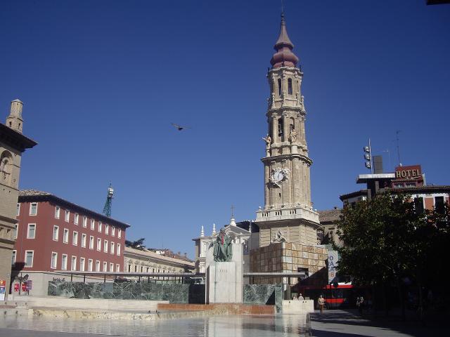 Στο αντικρινό του ποταμού άκρο της πλατείας δεσπόζει το άγαλμα του Φρανθίσκο Γκόγια, έργο του Καταλανού γλύπτη Φρεντερίκ Μορές ι Ντεουλοβόλ. Ο μεγάλος Ισπανός ζωγράφος του 18ου και 19ου αιώνα γεννήθηκε στις 30 Μαρτίου του 1746 σε ένα χωριό εδώ στην Αραγωνία, το Φουεντετόδος, 44 χιλιόμετρα απόσταση από τη Σαραγόσα.
