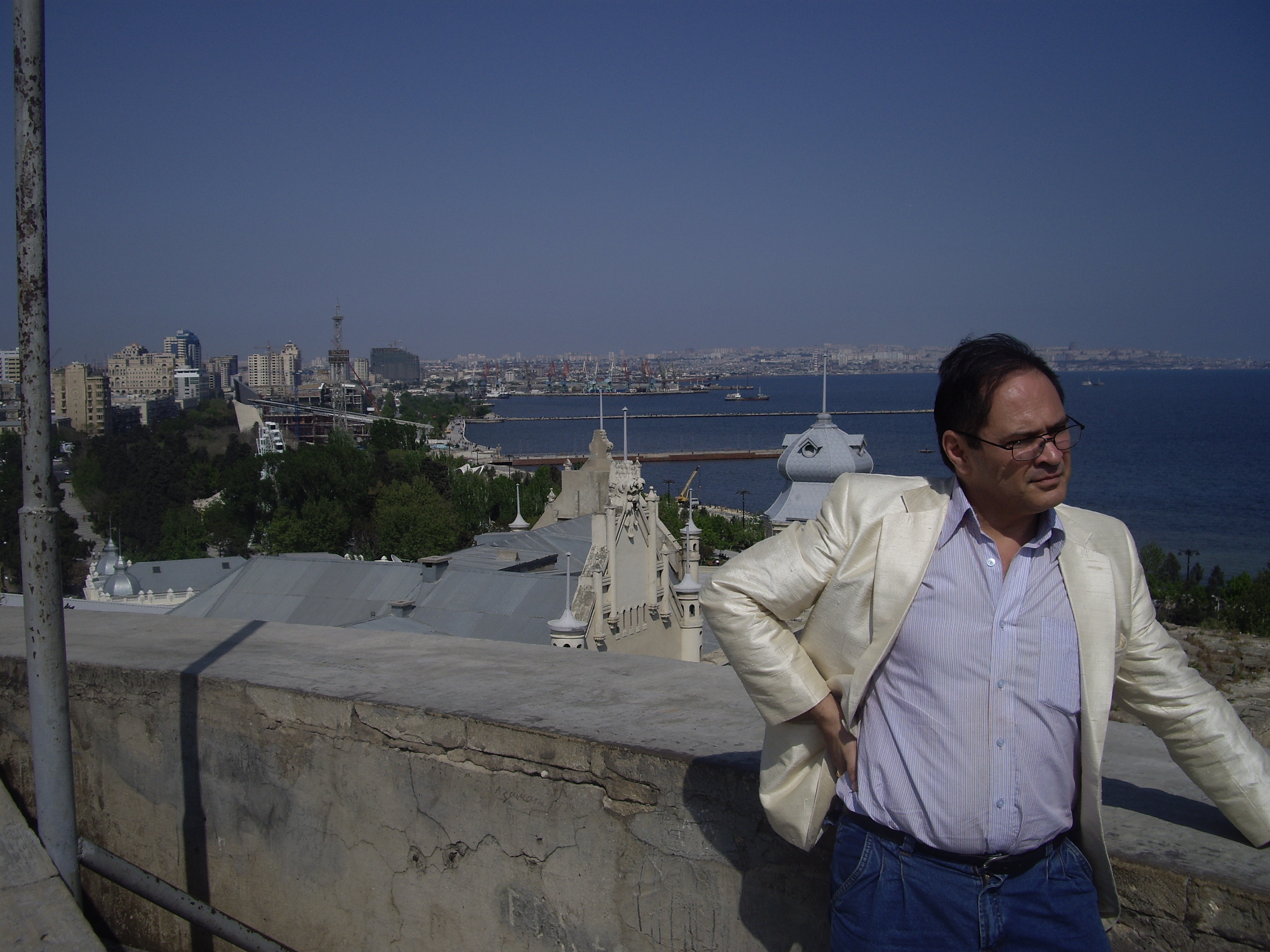 Φτάνοντας στο Μπακού, κατευθύνομαι αμέσως από την καινούργια στην παλιά πόλη, όπου βρίσκονται και τα περισσότερα αξιοθέατα. Πρώτη στάση της περιήγησής μου είναι ο ύψους 29,5 μέτρων «Παρθένος Πύργος». Ανεβαίνω σπειροειδώς, με αμυδρό φως να μπαίνει από στενά παράθυρα, καμιά εκατοστή σκαλιά ώς την κορυφή. Η θέα πάνω από τους οκτώ ορόφους του είναι μαγευτική. Μπροστά μου απλώνονται η Κασπία και η παραλιακή, ενώ ολόγυρα υψώνονται οι μιναρέδες των τζαμιών. Η κοντινή περίμετρος περικλείει κτήρια παλιότερων εποχών, ενώ στο βάθος φαίνονται σύγχρονοι ουρανοξύστες. Στα δεξιά, στην κορυφή ενός υψώματος, δεσπόζει ο Πύργος της Τηλεόρασης. Κατασκευάστηκε το 1996, παρότι τα έργα είχαν ξεκινήσει επί σοβιετικής περιόδου, το 1979, και με ύψος 310 μέτρων είναι το ψηλότερο κτίσμα στο Αζερμπαϊτζάν, διαθέτοντας από το 2008 ένα περιστρεφόμενο εστιατόριο στον 62ο όροφο, σε ύψος 175 μέτρων. Στο βάθος επίσης εμφανίζονται και οι τρίδυμοι ουρανοξύστες, ο νότιος, ο δυτικός και ο ανατολικός, «Πύργοι της Φλόγας», εκ των οποίων ο ψηλότερος φτάνει στα 182 μέτρα, και στεγάζουν ξενοδοχείο, διαμερίσματα και γραφεία. Η ονομασία τους και το σχήμα τους παραπέμπουν στις φλόγες του Ζωροαστρισμού και του Άχουρα Μάζντα, καθώς το Αζερμπαϊτζάν θεωρείται η γενέτειρα του Ζωροαστρισμού και των διδαχών του προφήτη Ζωροάστρη. Άλλωστε, και η ίδια η ονομασία της χώρας, «Αζερμπαϊτζάν», είναι ιρανικής προέλευσης και σημαίνει «Προστάτης του Πυρός», παραπέμποντας έτσι ευθέως στον Ζωροαστρισμό. Μάλιστα, η ζωροαστρική πρωτοχρονιά, η Νεβρόζ, παραμένει ακόμη επίσημη αργία για τη χώρα.