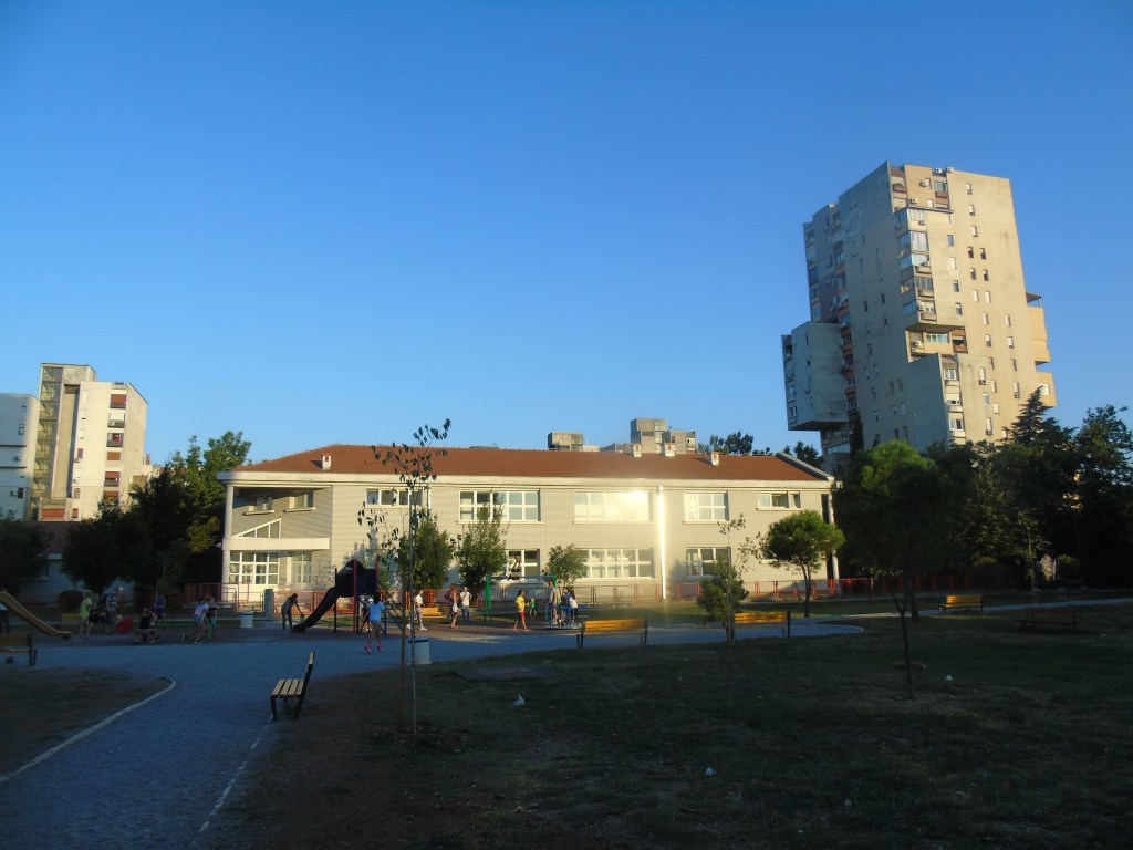 Παρασκευή 13 Σεπτεμβρίου 2019. Από τα πρώτα σημεία που επισκέπτομαι στην Ποντγκορίτσα (και όχι Ποντγκόριτσα όπως την προφέρουν πολλοί, πρόκειται για σύνθετη ονομασία που σημαίνει «Κάτω από τον λοφίσκο», καθώς το σλαβικό «γκορίτσα» σημαίνει «λοφίσκος», λέξη από την οποία προέρχεται και η Κορυτσά), όπως ονομάστηκε το 1326 η αρχαία Δοκλεία (κάποια στιγμή οι Ρωμαίοι τη μετονόμασαν σε «Διοκλεία», θεωρώντας, όχι δίχως κάποιον βαθμό αυθαιρεσίας, πως πιθανότατα έτσι ονομαζόταν στην αρχαιότητα. Αποκλείεται, σκέφτηκαν, οι πρόγονοί τους να επέλεγαν το βαρβαρίζον «Δοκλεία» χωρίς το γιώτα), είναι η γειτονιά Μπλοκ 5. Σχεδιάστηκε τόσο άρτια ώστε τρεισίμιση δεκαετίες μετά την ολοκλήρωσή του το 1984, παραμένει η πιο πράσινη γειτονιά της μαυροβουνιώτικης πρωτεύουσας.