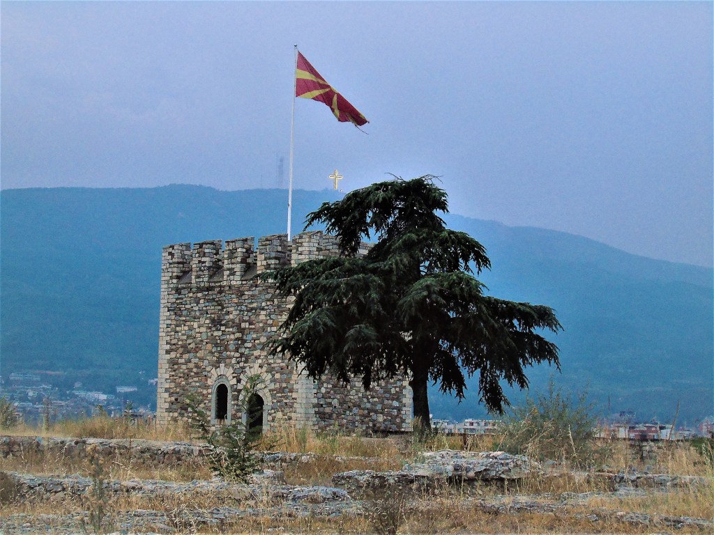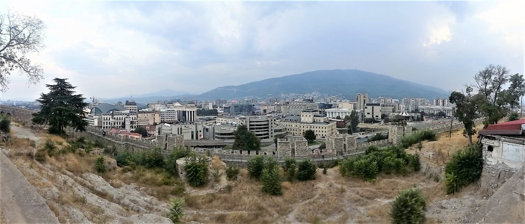 Έχοντας πια φτάσει στην κορυφή, διαπιστώνω πως το περπάτημα άξιζε τον κόπο, καθώς η θέα είναι εκπληκτική και περιλαμβάνει την πόλη, τον Βαρδάρη, τις γέφυρες, το κυκλοτερές κτήριο του ταχυδρομείου, την παρόχθια λεωφόρο Βλαχόφ, το στάδιο Τόσε Προέσκι Αρένα, όπως μετονομάστηκε μετά τη Συμφωνία των Πρεσπών το «Φίλιππος Β» προς τιμήν του αδικοχαμένου τραγουδιστή που αγαπήθηκε σε όλην τη Χερσόνησο του Αίμου και τα γύρω βουνά. Περπατώ πάνω στα τείχη για να απολαύσω καλύτερα τη θέα, ενώ παραδόξως ελάχιστα άτομα βρίσκονται εδώ.
