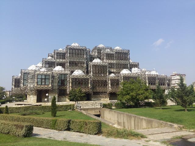 Κυριακή πρωί 8 Σεπτεμβρίου 2019. Από τα πρώτα αξιοθέατα που επισκέπτομαι στην πόλη είναι η Εθνική Βιβλιοθήκη. Προσπαθώ να διακρίνω αυτό που λέγεται πως ισχυριζόταν ο Μουτνιάκοβιτς για σύζευξη βυζαντινών και ισλαμικών αρχιτεκτονικών μορφών ή ακόμη και αυτό που είχε πει περί προ-ρομανικού βαλκανικού ύφους. Αυτό που βλέπω μου θυμίζει στυλ «Μεταβολισμού», όπως διεθνώς μεταφράζεται το «Σιντσινταΐσα», που πρωτοχρησιμοποίησε ο κριτικός αρχιτεκτονικής και διευθυντής του περιοδικού «Σινκεντσίκου» Νομπόρου Καβαζόε, συμβολοποιώντας στην αλληλεπίδραση ύλης και ενέργειας ζώντων οργανισμών και περιβάλλοντος, την αλληλεπίδραση τεράστιων κτηρίων και αναπτυσσόμενης πόλης όπου το παλαιό παραχωρεί θέση στο καινούργιο. Οι θόλοι και τα μεταλλικά κιγκλιδώματα μου θυμίζουν τον εμβληματικό τσιμεντένιο Πύργο – Κάψουλα Νακαγκίν που υψώθηκε το 1972 στο Σιμπάσι του Τόκιο, με 140 κάψουλες – διαμερίσματα «φυτεμένα» στον κύριο όγκο του συγκροτήματος. Άλλοι πάλι βλέπουν στη βιβλιοθήκη αναλογίες με το Σερβικό Πατριαρχείο του Πετς, του Ιπεκίου ή ακόμη οθωμανικά χαμάμ σαν αυτά που βλέπουμε από Σκόπια μέχρι Μπακού.
