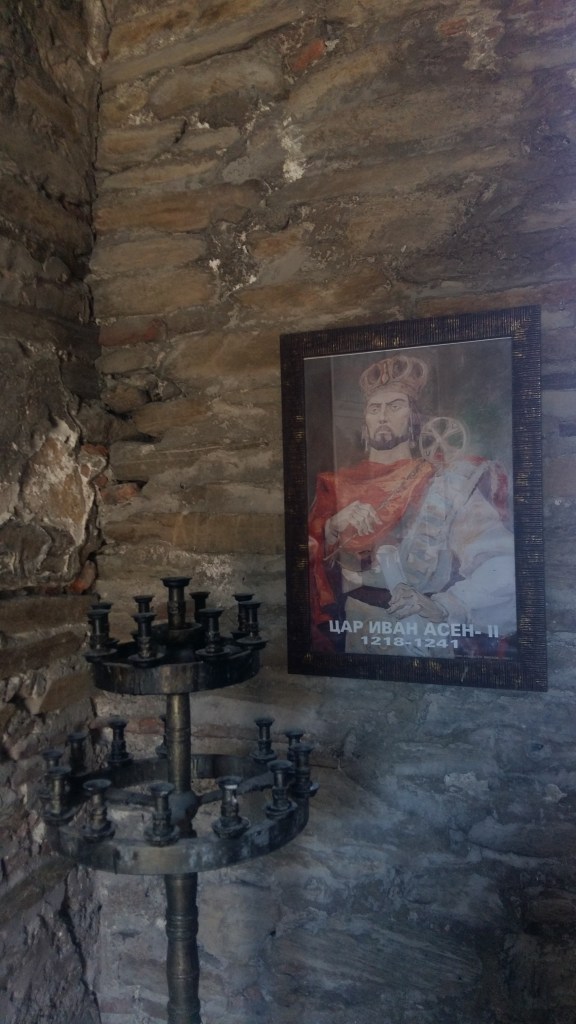 Από το αψιδωτό παράθυρο με το κγκλίδωμα η θέα των καταπράσινων λόφων είναι μαγευτική. Ακριβώς δίπλα, μια εικόνα δείχνει τον τσάρο Ιωάννη Ασέν Β’, εστεμμένο, με αυστηρό -σχεδόν βλοσυρό- βλέμμα, να κρατά σταυρόσχημο σκήπτρο στο δεξί και πάπυρο στο αριστερό.