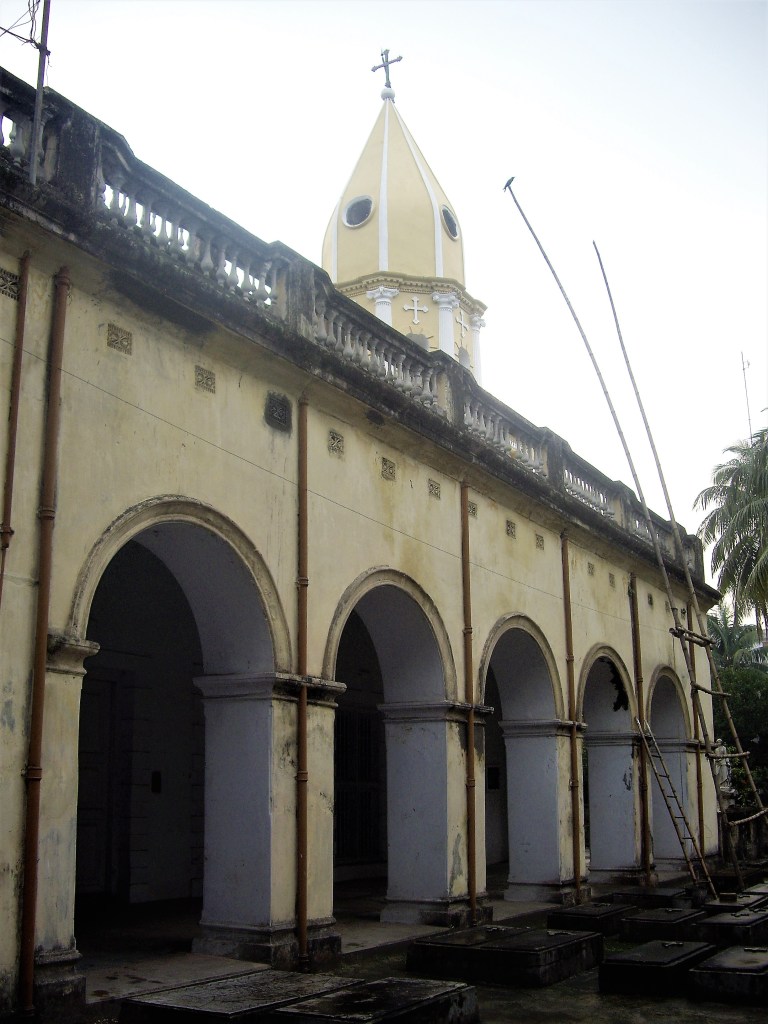 Η Αρμένικη Εκκλησία στην Ντάκα ή, όπως ονομάζεται επισήμως, Αρμενική Αποστολική Εκκλησία της Αναλήψεως είναι μάρτυρας της παρουσίας εδώ Αρμενίων ήδη από τον 17ο αιώνα και ταυτόχρονα ένα από τα αρχιτεκτονικά στολίδια της πρωτεύουσας. Αμέσως μόλις μπαίνω στο προαύλιο της εκκλησίας, η οποία είναι αφιερωμένη στην Ανάσταση του Χριστού, νιώθω να ανακουφίζονται τα αισθητήρια όργανά μου από την ένταση μιας τεράστιας μεγαλούπολης της οποίας ο συνολικός πληθυσμός υπολογίζεται πως ξεπερνά τα 15 εκατομμύρια. Τα ντεσιμπέλ από την κίνηση στους δρόμους τα διαδέχεται η σιγή του προαυλίου, μια «νεκρική σιγή» στην κυριολεξία, αφού τον ναό περιβάλλουν και από τις τρεις πλευρές εκτός της εισόδου πέτρινα μνήματα. Το πανδαιμόνιο των χρωμάτων που δημιουργείται από τα αμέτρητα πολύχρωμα ποδήλατα ταξί, τα ρίκσο, τα έντονα χρώματα των ρούχων ή από τις αμέτρητες αφίσες διαδέχεται ο απαλός συνδυασμός λευκού και ώχρας στις προσόψεις της εκκλησίας και το πράσινο του κήπου. Τη ζέστη των δρόμων διαδέχεται η δροσιά που προσφέρουν οι φοίνικες και άλλα είδη δένδρων εκατέρωθεν της εισόδου μαζί με το γρασίδι και τις περιποιημένες γλάστρες ολόγυρα. Οι δε πετρόχτιστοι διάδρομοι, τους οποίους πλαισιώνουν κιονοστοιχίες που ενώνονται με καμάρες, προσφέρουν και δροσιά και σκιά.