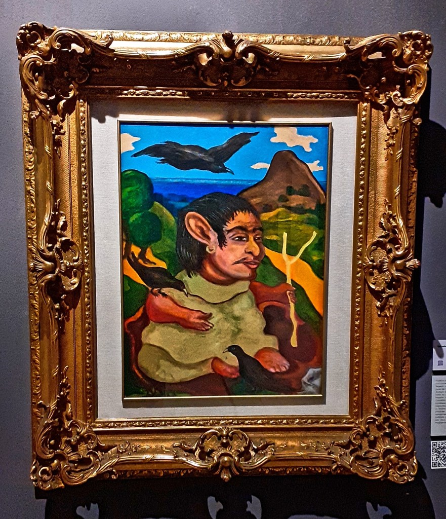 Στον πίνακα κυριαρχεί η μορφή του Σιπίτιο. Σώμα και πρόσωπο μικρού αγοριού, που όμως σε αγριεύει παρατηρώντας το, με το αραιό μουστάκι, τα σμιχτά φρύδια, τα τεράστια αυτιά και τα παραμορφωμένα από την κατάρα του Τλάλοκ πέλματα. Σύντροφοι αυτής της εμφανώς «μεξικάνικης» στα βασικά χαρακτηριστικά φυσιογνωμίας είναι δύο μαύρα κοράκια. Στην Κεντρική Αμερική συμβολίζουν και την αποκάλυψη. Χάρη στο κοράκι, λέει ένας μύθος της Μεσοαμερικής, ο άνθρωπος ανακάλυψε το πολύτιμο καλαμπόκι. Στο αριστερό του κρατά ένα διχαλωτό κλαρί σαν αυτά που χρησιμοποιούν οι σαμάνοι ραβδομάντεις.