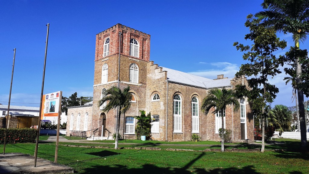 Τρίτη 18 Φεβρουαρίου 2020, μεσημέρι. Έξω από το ξενοδοχείο μπαίνω στο «chicken bus» και σε μισή ώρα φθάνω στον τερματικό σταθμό της Γουέστ Κόλλετ Κανάλ. Περνάω την γέφυρα της Κινγκ Στρήητ απέναντι στην Ηστ Κόλλετ Κανάλ, κατευθυνόμενος στα ανατολικά. Στα 800 μέτρα στρίβω δεξιά στην Ρήτζεντ. Στην συμβολή με την Άλμπερτ αντικρίζω μια εντυπωσιακή εκκλησία από τούβλα με τετραώροφο καμπαναριό, σε αποικιακό στυλ. Τα τούβλα, αντίθετα με το μαόνι και την πέτρα που μεταφέρθηκαν από την κοντινή ζούγκλα, τα έφεραν οι έποικοι το 1812 με πλοία από την Αγγλία, ενώ το πευκόξυλο το οποίο επίσης χρησιμοποίησαν οι σκλάβοι για να χτίσουν την εκκλησία, ήλθε από τις ΗΠΑ.