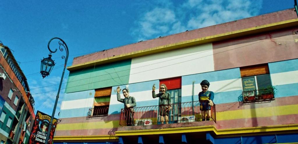 Από ένα μπαλκόνι του Καμινίτο στην Μπόκα, Γαρδέλ, Εβίτα και Μαραντόνα χαιρετούν τους περαστικούς