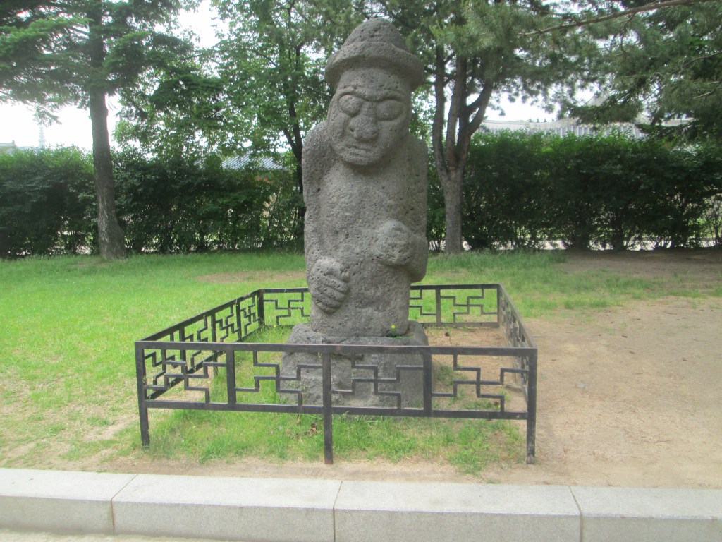 Εισερχόμενος στον χώρο του μουσείου, βλέπω δύο αγάλματα. Είναι δύο από τα συνολικά 48 που έχουν αναγνωριστεί επισήμως ως αυθεντικά «Ντολ χάρηουμπανγκ». Τα 21 βρίσκονται στην Πόλη του Τζέτζου, άλλα 12 στο Σεονγιούπ Νταιητζόνγκ, το λαογραφικό χωριό του νησιού στους πρόποδες του όρους Χάλλα, και 13 στο Νταιητζόνγκ, ενώ και άλλα υπάρχουν σε μερικές ακόμη πόλεις της Νότιας Κορέας.