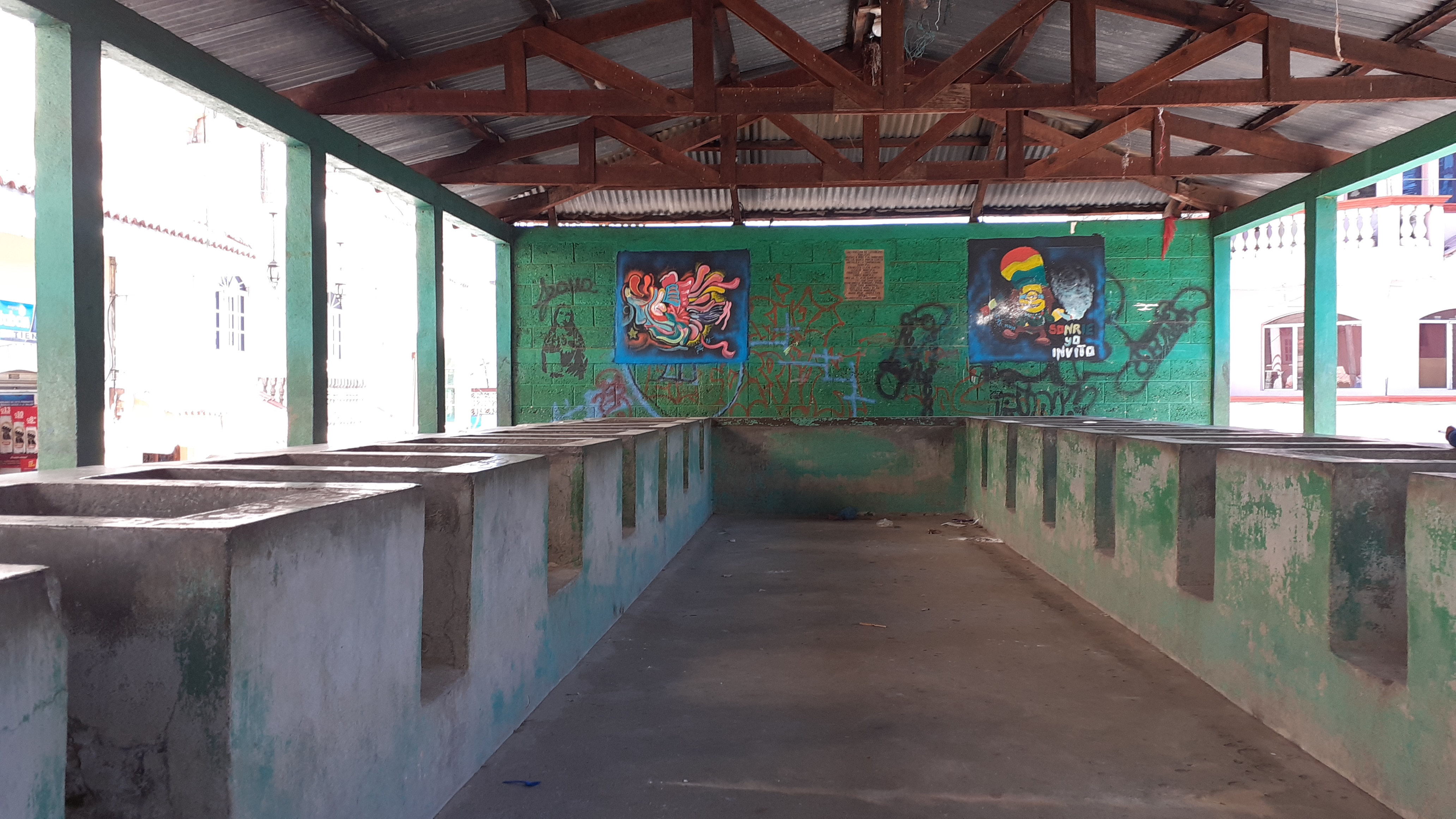 Παραδίπλα βρίσκεται η αγορά. Φρούτα, λαχανικά, τορτίγιες και πουπούσας, λεπτές πίτες από καλαμποκάλευρο με τυρί, φασόλι, λάχανο και τομάτα. Έξω από ένα κρεοπωλείο με την πολύ χαρακτηριστική πινακίδα «Supercarnes», σαν να λέμε «Υπερκρέατα», με μπλε καλλιγραφικά κεφάλαια γράμματα στο μπαλκόνι του αποπάνω ορόφου, υπαίθριοι λιανοπωλητές έχουν στήσει τους πάγκους τους κάτω από τεράστιες ομπρέλες. Η ώρα έχει πάει πια 12 το μεσημέρι και ο ήλιος έχει άρχισε να καίει.