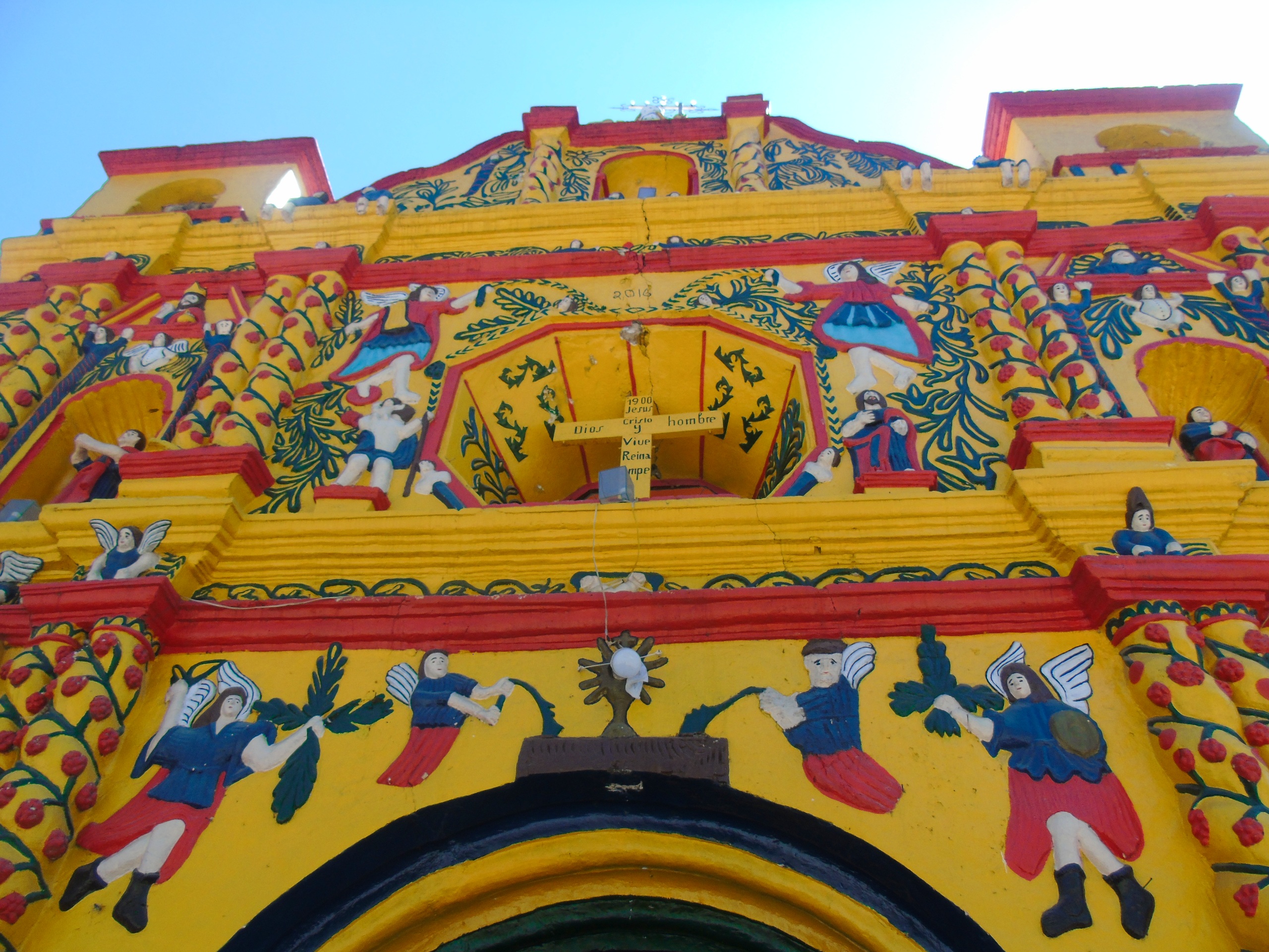 Το περιεχόμενο των γλυπτών είναι δανεισμένο τόσο από τη χριστιανική λατρεία όσο και από τις αρχαίες τοπικές παγανιστικές παραδόσεις. Κάποιοι μελετητές ισχυρίζονται πως οι παραστάσεις της πρόσοψης απεικονίζουν -υπό χριστιανικό μανδύα- αποσπάσματα από το Πόπολ Βου, τη Μυθολογία και ιστορία των Μάγια της Γουατεμάλας, του Μεξικού και του Μπελίζ.