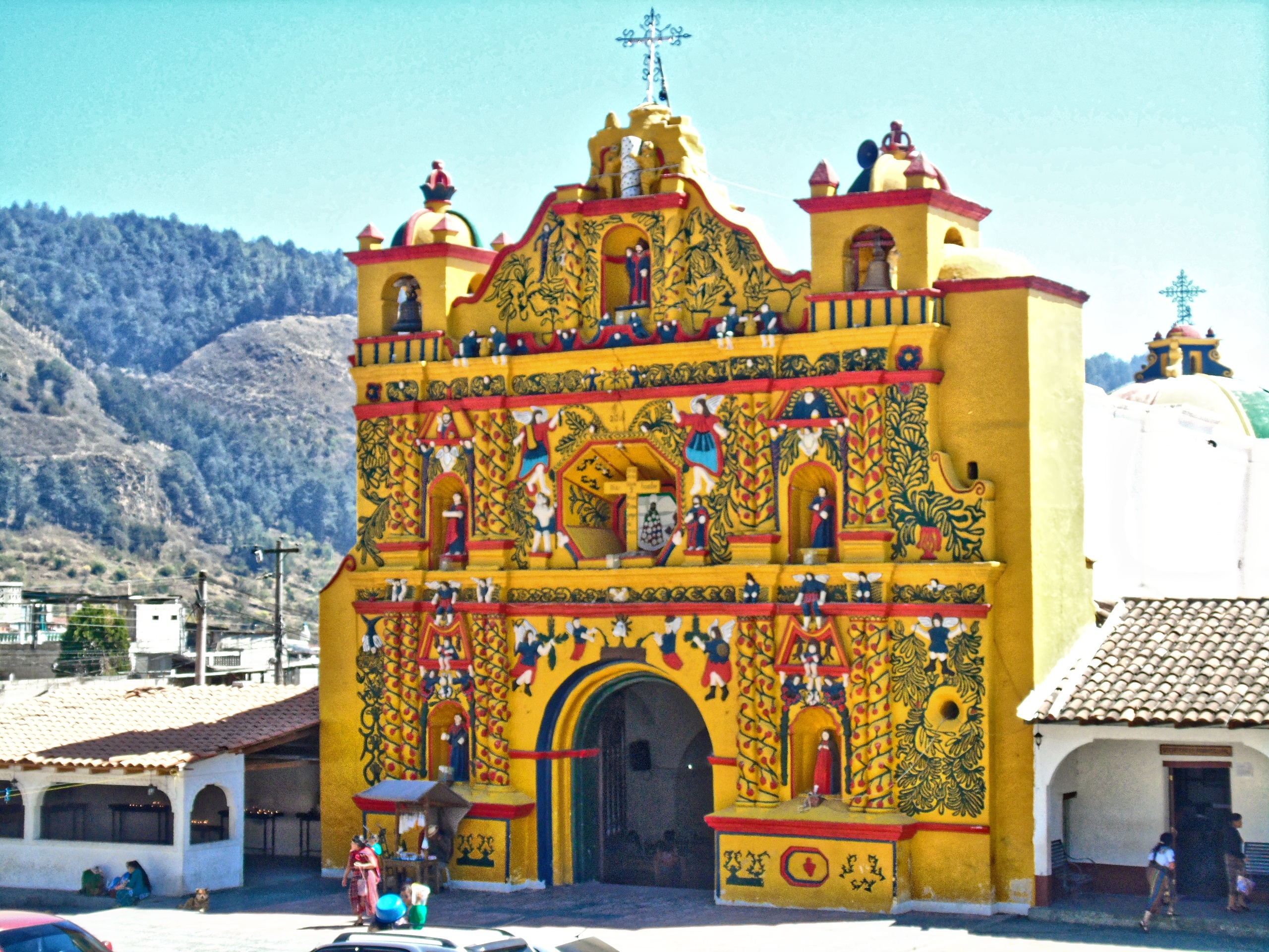 Η εκκλησία είναι χτισμένη πάνω από έναν ναό των Μάγια. Απομεινάρι της παλαιάς λατρείας είναι και ο παρακείμενος υπαίθριος βωμός με τους τρεις σταυρούς, όπου οι πιστοί καίνε προσφορές.