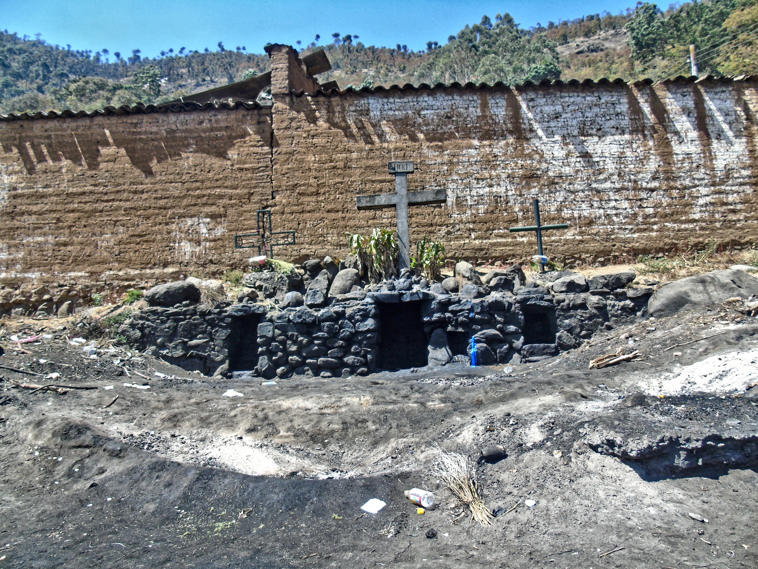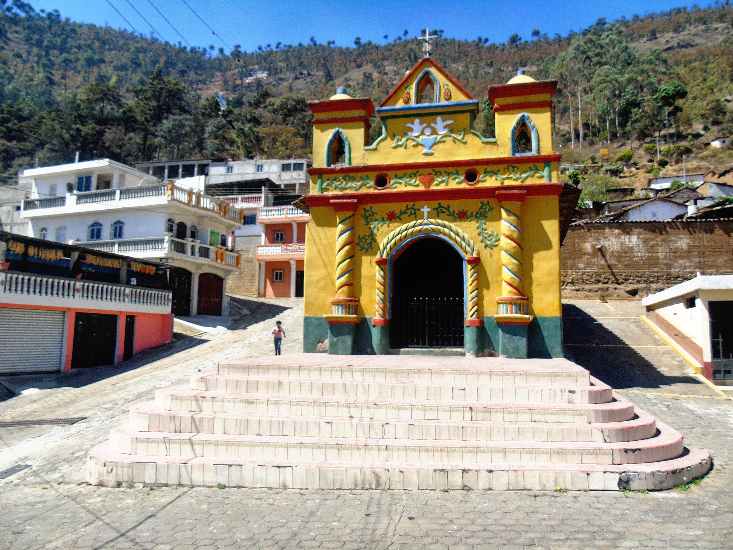 Ανεβαίνοντας τον λόφο βλέπω μια ακόμη εκκλησία. Με την ίδια κίτρινη προς το μουσταρδί πρόσοψη με αυτή του Αγίου Ανδρέα. Πρόκειται για τον ναό του Καλβάριο. «Καλβάριο» λένε οι Ισπανοί τον Γολγοθά και μεταφορικά τον Τόπο του Μαρτυρίου. Το κίτρινο χρώμα συμβολίζει για τους ιθαγενείς κάτι πολύτιμο. Όχι το χρυσάφι, αλλά την τροφή. Και βασική τροφή εδώ είναι το καλαμπόκι, το χρώμα του οποίου αντανακλάται στις προσόψεις των ναών των Αγίου Ανδρέα και του Καλβάριο.