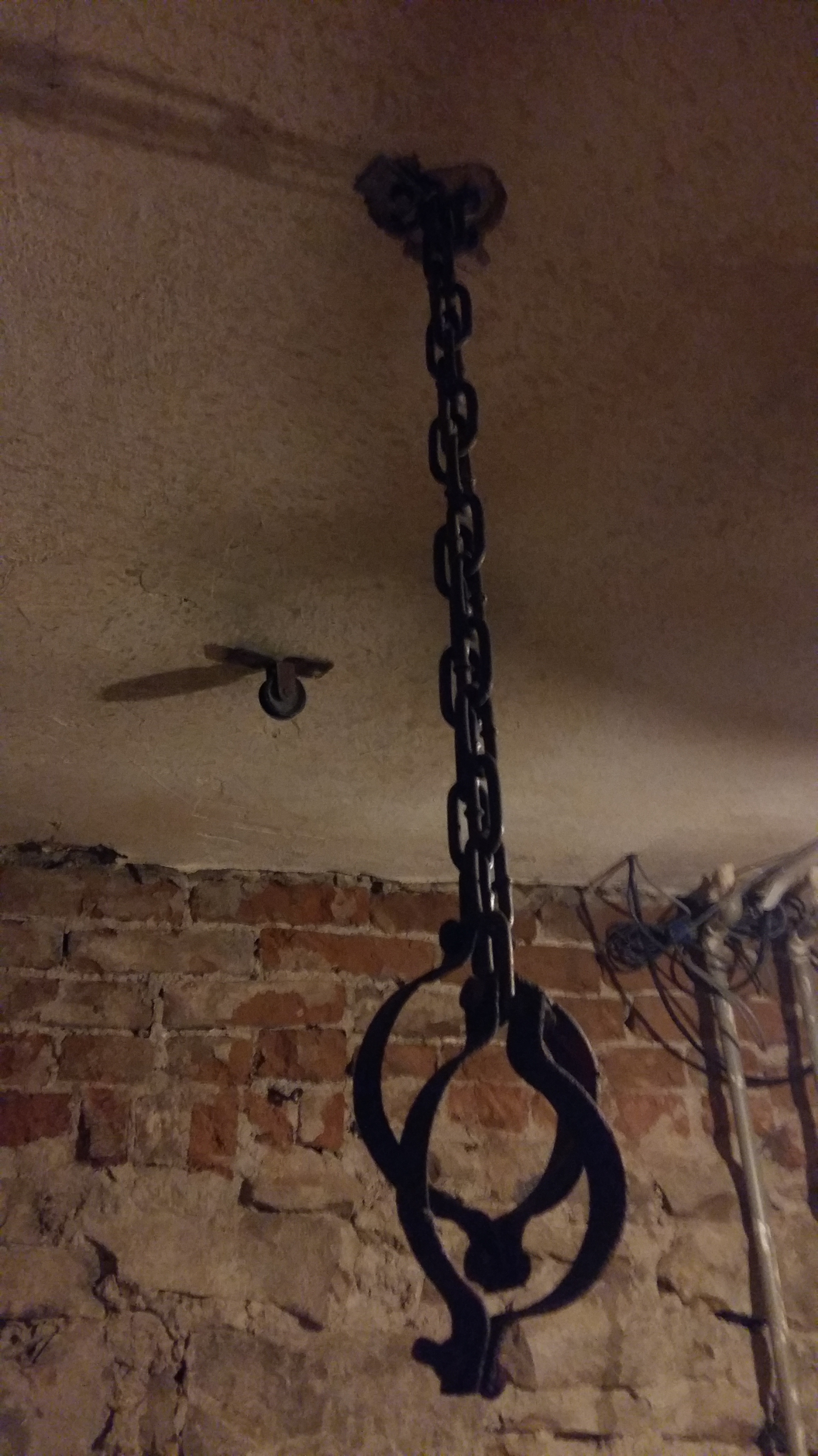 Η φαντασία του επισκέπτη θα μπορούσε να οργιάσει με τον πιο αρρωστημένο τρόπο στη σκέψη του πως ένας διεστραμμένος σαδιστής, από αυτούς οι οποίοι έχουν όνειρο ζωής να φορέσουν μια στολή έτσι ώστε να έχουν και την νόμιμη κάλυψη και το «καθήκον» να εκδηλώνουν τα άγρια ένστικτά τους, θα χειριζόταν τις αλυσίδες με τις τεράστιες χειροπέδες που κρέμονταν από το ταβάνι ενός διπλανού θαλάμου και μια τροχαλία εγκατεστημένη και αυτή στο ταβάνι σε μισό μέτρο απόσταση.