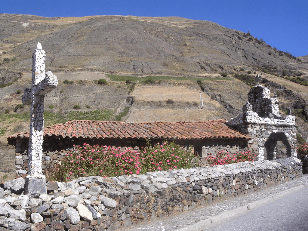 Αριστουργηματική είναι η κόχη του ιερού από χιλιάδες λευκές και κοκκινωπές πέτρες όπου έχουν στηθεί μπροστά ο βωμός, στο βάθος ο Εσταυρωμένος και εκατέροθεν αγάλματα αγίων. Αυτό και μόνο εξηγεί τα τέσσερα χρόνια που χρειάστηκε για την κατασκευή ο «αρτίστα δελ Πάραμο».