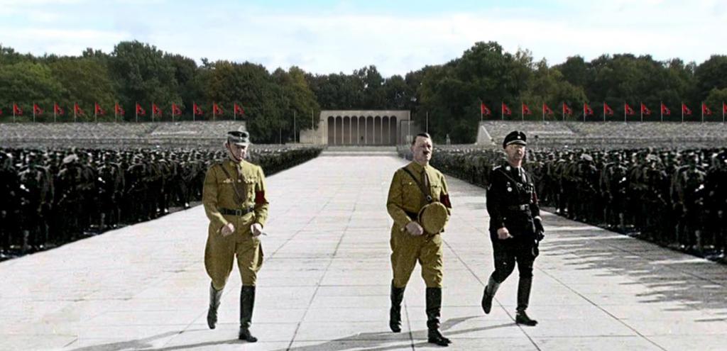 Στάθηκα με την πλάτη στην Αίθουσα της Τιμής για να δω το θέαμα της Luipold Arena. Αναμφίβολα οι συγκεντρώσεις θα ήταν επιβλητικές. Όπως και σε όλη την περιοχή ολόγυρα, με το γήπεδο Ζέπελιν των παρελάσεων και των στρατιωτικών επιδείξεων, το οποίο μετά τον πόλεμο έγινε αγνώριστο φιλοξενώντας από πιτσιρικάδες που παίζουν με πατίνια μέχρι ροκ συναυλίες, μεταξύ των οποίων και των Rolling Stones. Πάντως, όπως αντιλήφθηκα, στις ταινίες εποχής οι σκηνοθέτες των ναζί κατάφερναν με διάφορα τρικ να δείχνουν ακόμη επιβλητικότερο το θέαμα.