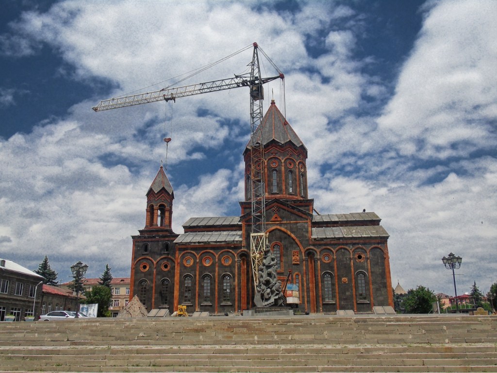 Σχεδόν τρεις δεκαετίες μετά, όταν επισκέφτηκα την πόλη, οι γερανοί ήταν ακόμη παρόντες και τα έργα αποκατάστασης συνεχίζονταν. Παρά ταύτα, καθώς ήταν Κυριακή, βρέθηκα στην εκκλησία την ώρα της θείας λειτουργίας, με τους πιστούς να εκκλησιάζονται ατάραχοι ανάμεσα σε σκαλωσιές, μαδέρια και διάφορα κατασκευαστικά υλικά. Δεσπόζει, με τον μυτερό -τυπικό αρμένικο- τρούλο του, που φθάνει ώς τα 36 μέτρα από το έδαφος και το έντονο κόκκινο και ανθρακί χρώμα του στα νότια της κεντρικής πλατείας Βαρτάναντς.
