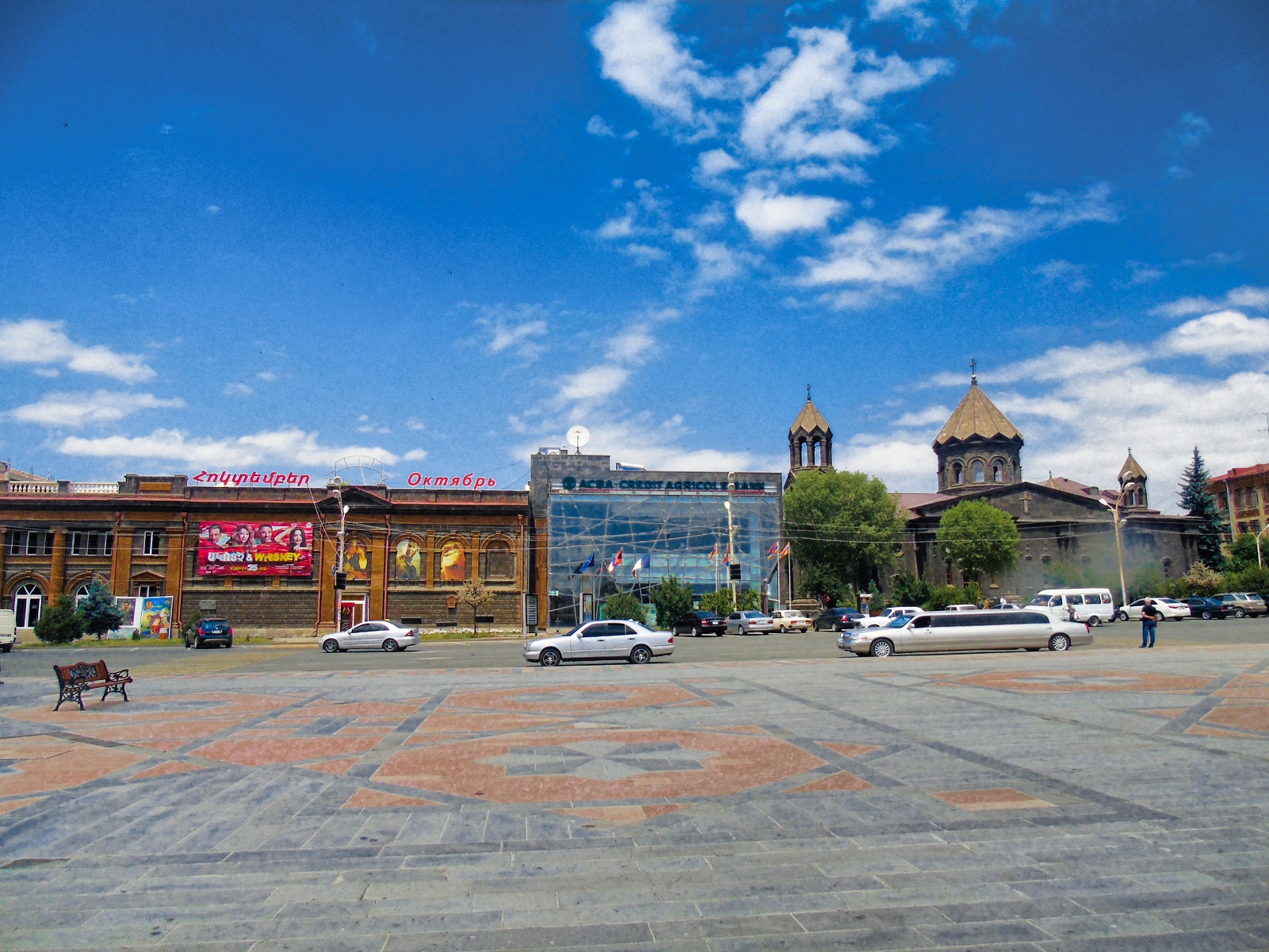 Νωρίς το απόγευμα, είχα γυρίσει το μεγαλύτερο μέρος της δεύτερης σε σπουδαιότητα πόλης -και για πολλούς πνευματικής και πολιτιστικής πρωτεύουσά της- της Αρμενίας και κατευθύνθηκα στην κεντρική πλατεία. Έπειτα από πολύωρο περπάτημα στο παλιό τμήμα της πόλης και με το θερμόμετρο να δείχνει σταθερά πάνω από τους 35 βαθμούς, η βόλτα μου σε ένα σκιερό μέρος με δένδρα έκανε πιο ευχάριστο το περπάτημα με κατεύθυνση ένα παλιό θέατρο με ιστορία πάνω από 150 χρόνια. Κατασκευάστηκε με δωρεές των κατοίκων στο πάρκο της πόλης, κοντά στο παλιό νεκροταφείο, την εποχή ακόμη που το Γκιουμρί ονομαζόταν Αλεξανδρόπολη ή Αλεξάντραπολ.