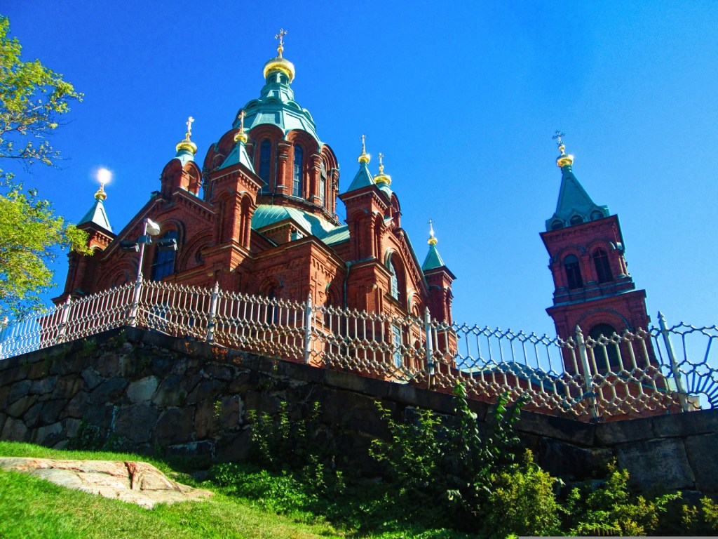 Φτάνοντας στο Ελσίνκι, το πρώτο αξιοθέατο που επισκέφτηκα, μια και βρίσκεται μπροστά στο λιμάνι, ήταν ο βυζαντινοσλαβικού ρυθμού καθεδρικός ναός Ουσπένσκι, οποίος από το 1868 στέκεται στον λόφο που βρίσκεται δίπλα στο λιμάνι. Για τους λάτρεις της τέχνης και ειδικά της ιστορίας της θρησκευτικής τέχνης και αρχιτεκτονικής, ο ναός παρουσιάζει μεγάλο ενδιαφέρον, καθώς στο εσωτερικό του συνδυάζει στοιχεία ορθόδοξης αισθητικής με λουθηρανική διάταξη, όπως λ.χ. η αγία τράπεζα, η οποία δεν βρίσκεται μέσα στο ιερό, αλλά μπροστά από τους πιστούς, αλλά και ενδιαφέρουσες τοιχογραφίες. Εκτός όμως από την αισθητική του έντονα κόκκινου εξωτερικά ναού, μπόρεσα να απολαύσω από την είσοδό του, από την κορυφή του λόφου όπου στέκεται επιβλητικός, τη θέα προς την Πλατεία της Αγοράς, την Καουπατόρι όπως τη ονομάζουν οι ντόπιοι, με τους πολυάριθμους πάγκους των μικροπωλητών με τα φρούτα, τα λαχανικά, ακόμη και τις κονσέρβες με κρέας αρκούδας.