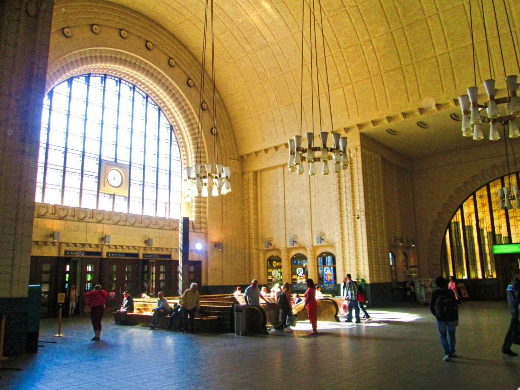 Καθώς, εκτός από μουσεία, αξιοθεάτα, αγορές, μνημεία και θέατρα, συνηθίζω να επισκέπτομαι σε κάθε πόλη όπου φτάνω τους κεντρικούς σταθμούς λεωφορείων, μετρό και τρένων, οι οποίοι μπορούν να πουν πολλά για την αισθητική, το επίπεδο ζωής και την καθημερινότητα των κατοίκων, η περιπλάνησή μου στη φινλανδική πρωτεύουσα συνεχίστηκε με ένα από τα ωραιότερα δείγματα αρ νουβό αρχιτεκτονικής. Κι αυτό δεν ήταν άλλο από τον κεντρικό σιδηροδρομικό σταθμό της πόλης, ο οποίος εξυπηρετεί με τις 19 πλατφόρμες του καθημερινά 200.000 επιβάτες που έχουν προορισμό είτε συνοικίες της πόλης μέσω του συστήματος μετρό είτε άλλες πόλεις με το τρένο. Το κτήριό του, το οποίο εγκαινιάστηκε το 1919, θεωρείται -και είναι- ένας από τους ωραιότερους σιδηδρομικούς σταθμούς του κόσμου, διάκριση που του επιφύλαξε και το BBC το 2013.