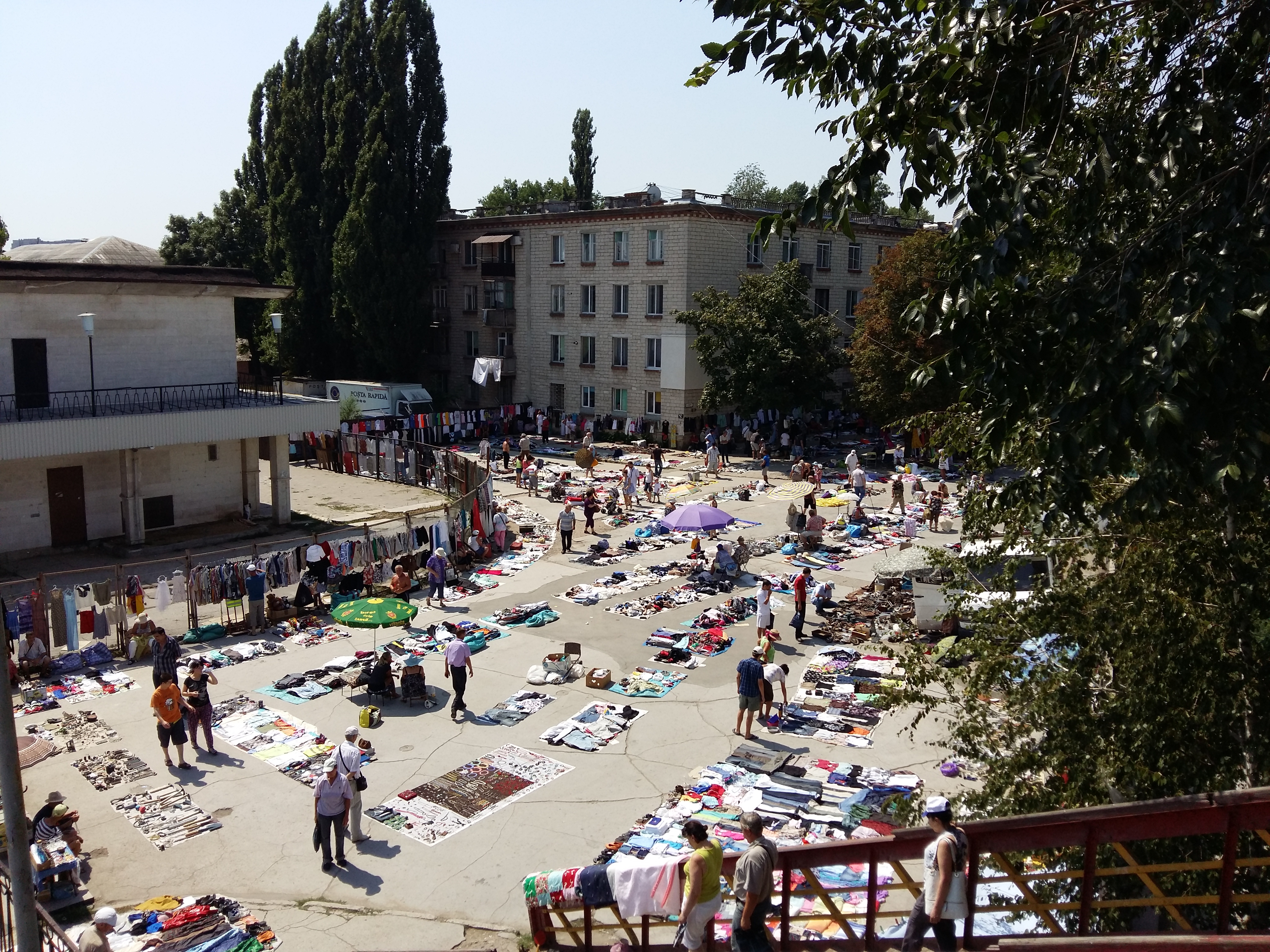 Καθώς κατευθύνομαι προς τον σιδηροδρομικό σταθμό, περνώ από ένα τεράστιο υπαίθριο παζάρι. Τα περισσότερα είδη είναι παραταγμένα «στρωματσάδα» στον πεζόδρομο, ενώ λίγα έχουν την «πολυτέλεια» να εκτίθενται σε πάγκους. Ρούχα από δεύτερο χέρι, αθλητικά παπούτσια, πίνακες, φο μπιζού, εργαλεία, απορρυπαντικά, γυαλιά ηλίου, κατσαρολικά, τζην με 20 λέι, κάπου ένα ευρώ, τη σερτ με 10 λέι, δηλαδή μισό ευρώ, ηλεκτρικά σίδερα, μεταχειρισμένα βιβλία με εξώφυλλα σε κυριλλική και λατινική γραφή, πατίνια, κλουβιά για καναρίνια, γόβες, σωσίβια, ό,τι μπορεί να φανταστεί κανείς. Και καθώς βρισκόμαστε στον Ιούλιο, πωλήτριες και πωλητές φορούν καπέλα ή στέκονται κάτω από ομπρέλες θαλάσσης. Το ντύσιμο του κόσμου είναι απλό και απέριττο και πολύ μεγάλο ποσοστό των ανδρών κυκλοφορούν με βερμούδες. Απλότητα, λιτότητα, πρακτικότητα με ελάχιστη έως μηδαμινή επιτήδευση.