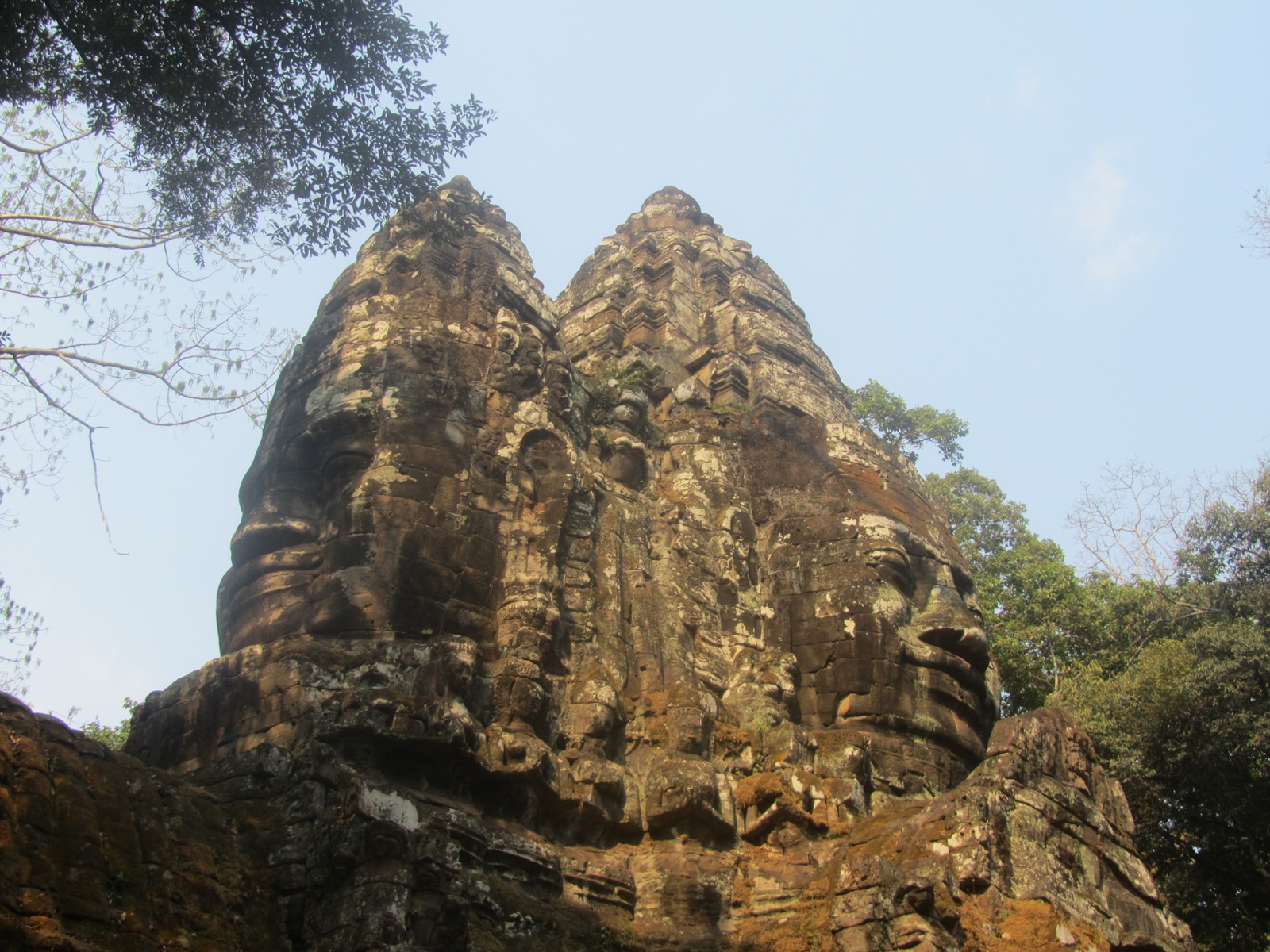 Πρώτο μνημείο που επισκέφθηκα στην πόλη δεν θα μπορούσε να είναι άλλο από τον περίφημο «καθεδρικό» της, τον ναό Μπαγιόν. Ταυτόχρονα με τον ναό παρατηρούσα και τις αντιδράσεις των τουριστών. Έμεναν όλοι με ανοιχτό το στόμα. Περισσότεροι από 50 πύργοι των οποίων το σχήμα, το χρώμα, η διάταξη, όλα τα σχεδιαστικά και αρχιτεκτονικά στοιχεία απέπνεαν μια «γοτθική» ατμόσφαιρα, πάνω από 200 γιγαντιαία αγάλματα με το χαμογελαστό πρόσωπο του Αβατοκιτεσβάρα, του Κυρίου της Συμπόνιας, και κάπου 1.200 ανάγλυφα που περιέχουν 11.000 φιγούρες αντανακλούν αφενός την υψηλή τεχνική των δημιουργών, αφετέρου τη μνημειακή μεγαλομανία του βασιλιά Τζαγιαβαρµάν Ζ’ ο οποίος ήταν η «ψυχή» του έργου και κατοπτρίζεται σε γιγαντιαία γλυπτά πρόσωπα στη θεϊκή του διάσταση.