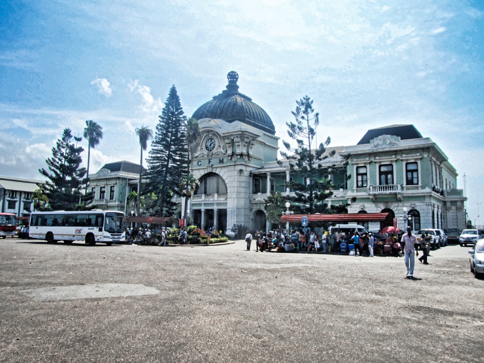 Αφήνοντας τη «Σιδερένια Κατοικία» και αφού σταμάτησα για απογευματινό τσάι στην Πλατεία Ανεξαρτησίας, συνέχισα αριστερά τη λεωφόρο Λουμούμπα και πάλι αριστερά, άρχισα να επιστρέφω προς την πλευρά της θάλασσας με κατεύθυνση τον σταθμό. Στη διαδρομή συνάντησα αρκετά τζαμιά και μουσεία, για τα οποία θα αφιέρωνα την επόμενη ημέρα. Κατεβαίνοντας τη λεωφόρο Λαϊκού Πολέμου (Avenida Guerra Popular) και φτάνοντας την 25η Σεπτεμβρίου, αντίκρισα απέναντί μου μου μια εντυπωσιακή τριάδα αξιοθεάτων. Αριστερά μου απλωνόταν η Praça dos Trabalhadores (Πλατεία Εργατών), δεξιά μου το Σιδηροδρομικό Μουσείο και στη μέση ο σιδηροδρομικός σταθμός.