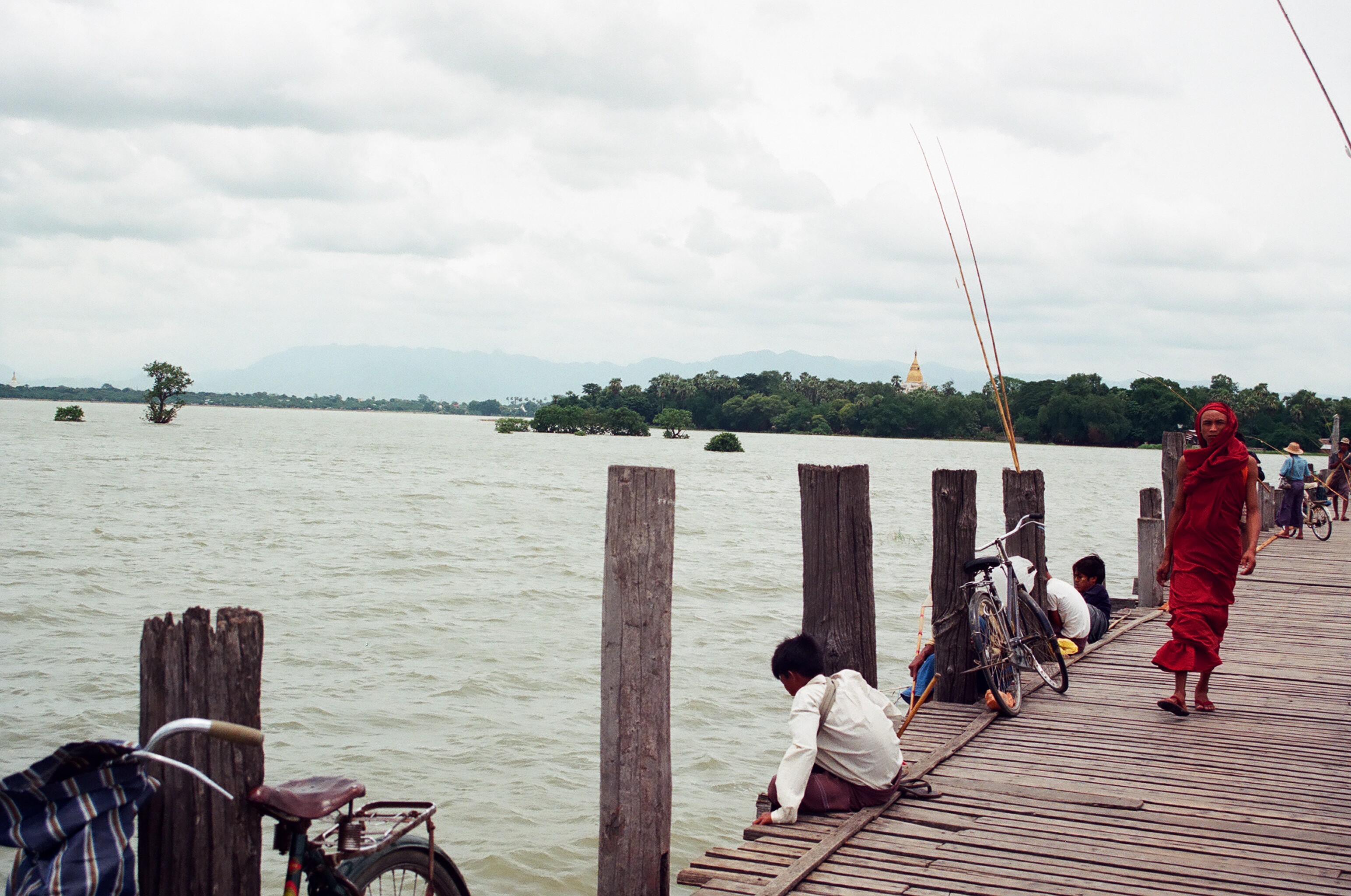 Σάββατο 28 Ιουλίου 2001. Μετά από πολύωρη εκδρομή στο Μινγκούν, όπου για διαδρομή 40 χιλιομέτρων χρειάστηκα τρίκυκλο ταξί, ποταμόπλοιο και 4×4, επιστρέφω στο Μάνταλαιυ όπου έχω καταλύσει. Στη διαδρομή κάνω παράκαμψη και συνεχίζω για Αμαραπούρα, 15 χιλιόμετρα νοτιότερα από τη δεύτερη μεγαλύτερη πόλη της Βιρμανίας. Και αυτή, το Μάνταλαιυ, υπήρξε κάποτε πρωτεύουσα, διαδεχόμενη μάλιστα την Αμαραπούρα ως έδρα του βασιλείου στις 3 Μαΐου 1859. Και, εννοείται, το πρώτο αξιοθέατο που σπεύδω να επισκεφθώ φτάνοντας είναι η Ου Μπέιν, η μεγαλύτερη και ταυτοχρόνως παλαιότερη χρησιμοποιούμενη ξύλινη γέφυρα στον κόσμο.