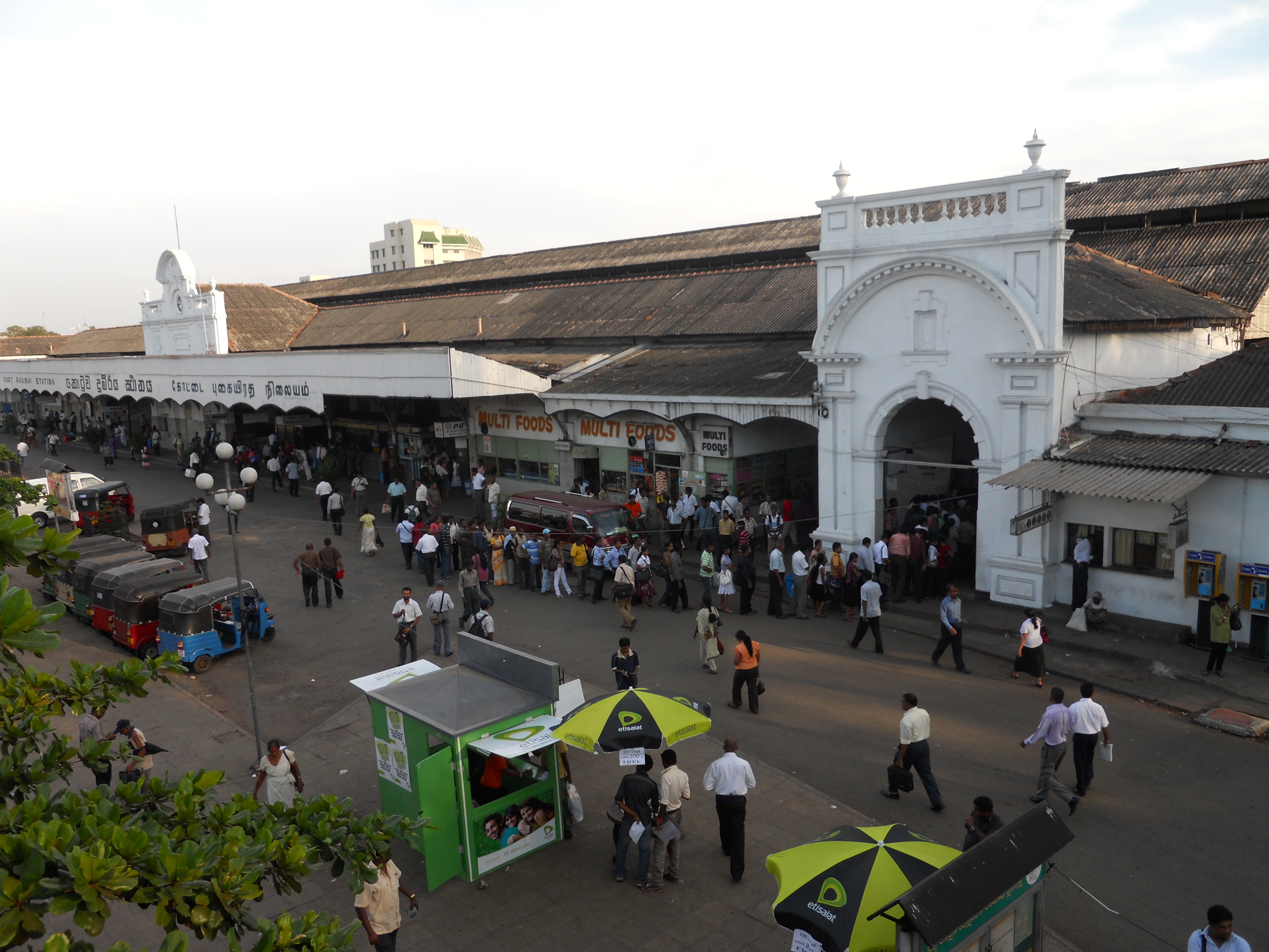 Ο αρχικός σταθμός που χτίστηκε το 1877 και από όπου ξεκινούσε παλαιότερα η παραθαλάσσια διαδρομή βρισκόταν λίγο δυτικότερα του σημερινού ο οποίος είναι υπεραιωνόβιος μιας και δημιουργήθηκε το 1908 και είναι γνωστός με την αγγλική του ονομασία «Φορτ Σταίησιον». Το σχέδιό του θυμίζει το σταθμό «Βικτωρία» του Μάντσεστερ. Βρίσκεται στο κέντρο της πόλης κοντά στο Φρούριο και στο Πέτα. Στην περιοχή του Φρουρίου χτυπά η καρδιά της οικονομίας και του επιχειρείν της χώρας, αφού εδώ βρίσκονται το χρηματιστήριο της χώρας και το Εμπορικό Επιμελητήριο μαζί με έδρες αρκετών επιχειρήσεων, το κεντρικό ταχυδρομείο, δημόσια κτίρια, υπουργεία και ξενοδοχεία. Ακριβώς απέναντι από τον σταθμό βρίσκεται το Πέτα, γνωστό για την ομώνυμη θορυβώδη αγορά του, στην οποία μπορείς να βρεις τα πάντα. Ή σχεδόν τα πάντα. Μέσα σε ελάχιστο χρόνο, λίγο προτού αναχωρήσει το τραίνο για το Γκαίηλ, μία από τις 18 αναχωρήσεις που περνούν καθημερινά από αυτήν την πόλη, πετάχτηκα και αγόρασα μια παλιά φωτογραφική μηχανή από αυτές που παίρνουν φιλμ μιας και δεν βρήκα εγκαίρως κάποια ψηφιακή μηχανή να αντικαταστήσω εκείνην που αποδήμησε εις τον χλοερόν τόπον των αψύχων αντικειμένων λίγη ώρα νωρίτερα. Θα μπορούσα να αφιερώσω περισσότερο χρόνο να ψάξω για ψηφιακή κάμερα αν από τον κεντρικό σταθμό γίνονταν και οι 18 αναχωρήσεις. Ατυχώς όμως, οι περισσότερες γίνονταν από τον σταθμό Μαραντάνα, κανα δυό χιλιόμετρα πιο μακριά και είχα ήδη κλείσει εισιτήριο για την μοναδική εκείνη την ημέρα αναχώρηση από το «Φορτ Σταίησιον» που ήταν προγραμματισμένη σε λίγη ώρα. Ίσως το εντυπωσιακότερο από όσα είδα στοιχείο του σταθμού ήταν πως τα πάντα στις συναλλαγές με εισιτήρια, πληρωμές, κρατήσεις, πληροφορίες, γίνονταν χωρίς υπολογιστές, χειροκίνητα αλλά με απόλυτη υπευθυνότητα και αυτό σε συνδυασμό με την παλαιότητα του κτιρίου και τον δαιμονιώδη θόρυβο που επικρατούσε στην κυρίως αίθουσα, στις καφετέριες, στις αίθουσες αναμονής και στις 10 πλατφόρμες του που εξυπηρετούν καθημερινώς 200.000 κόσμο ήταν κάτι σαν ένα ταξίδι στον χρόνο.