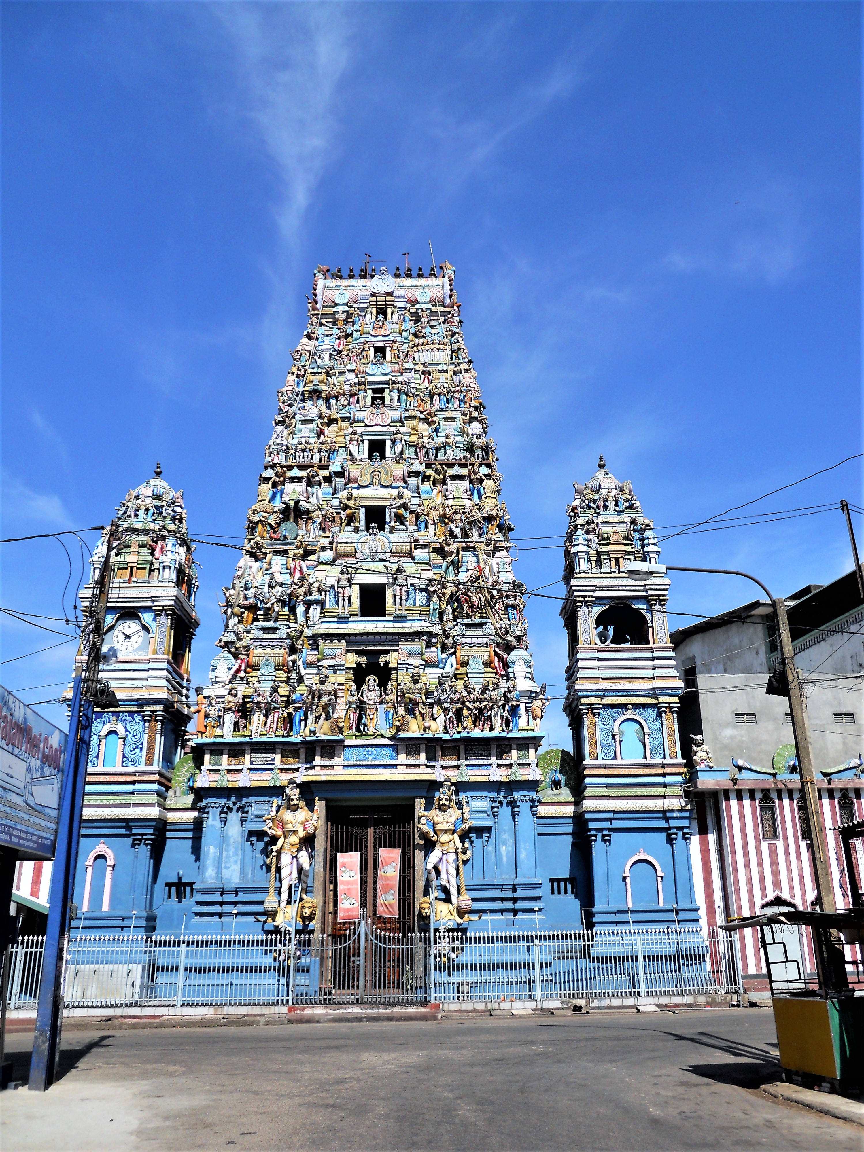 Πρώτος σταθμός στο Κολόμπο, με το θερμόμετρο στους 30°C, ήταν ο ναός του Σρι Σιβασουμπραμανίγια Σουάμυ ο οποίος σχετίζεται με έναν πανάρχαιο μύθο. Κάποτε η θεϊκή τάξη κινδύνευσε να διασαλευθεί εξαιτίας ενός παντοδύναμου και ανίκητου «ασούρα» -δαίμονα στα σανσκριτικά- του Ταράκα, ο οποίος είχε νικήσει κατ’ επανάληψη τους θεούς. Ο μόνος που κατάφερε να νικήσει αυτόν και τους δύο αδελφούς του Σιμχαμούχαν και Σουραπάντμαν ήταν ο γιος του Σίβα και της Παρβάτι, ο πολεμικός θεός Καρτικέγια. Αφού σκότωσε τον Ταράκα, χάρισε την ζωή στους δύο αδελφούς του μεταμορφώνοντας τον Σιμχαμπούχαν σε λιοντάρι που έγινε το άρμα της θεάς Παρβάτι και τον Σουραπάντμαν σε παγώνι που έγινε το «όχημά» του.