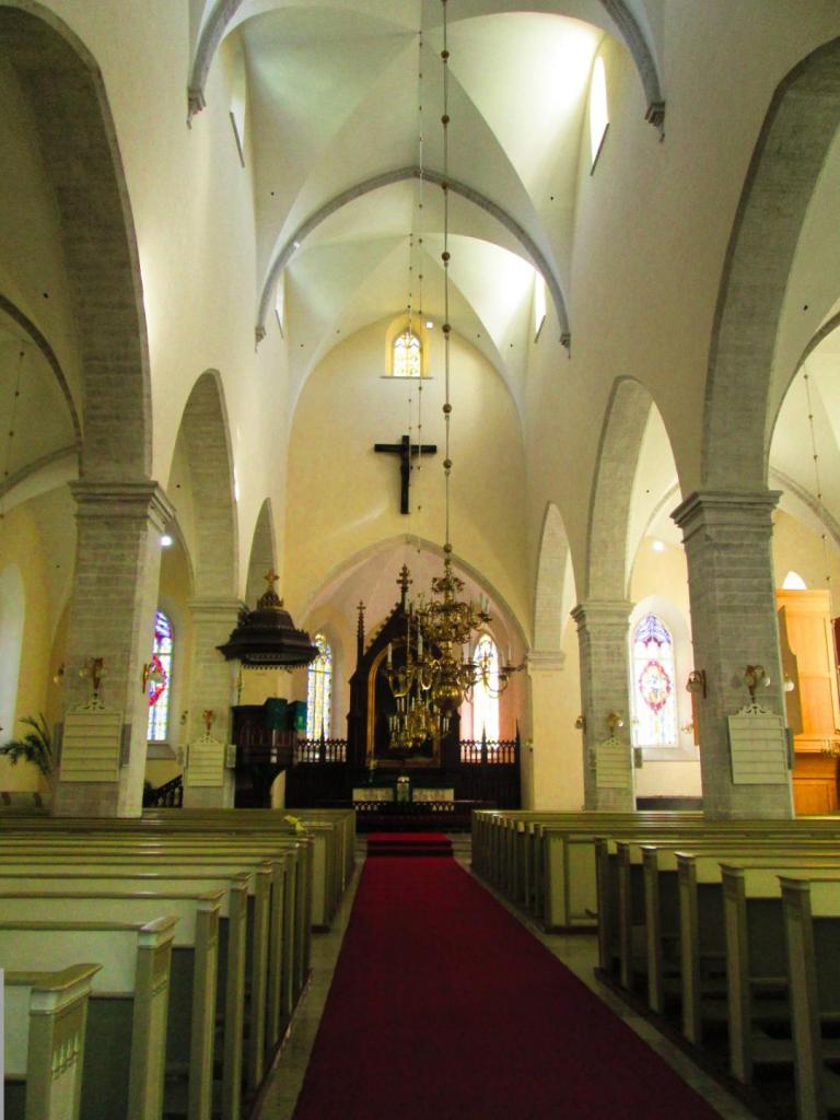 Η χαρακτηριστική μυτερή οροφή του ναού, λειτουργώντας ως αλεξικέραυνο, δέχτηκε αστραπές οι οποίες προκάλεσαν τρεις πυρκαγιές, το 1625, το 1820 και το 1931. Αυτά που αξίζει να προσέξει κάποιος είναι ο τεράστιος πίνακας του Εσταυρωμένου στο ιερό και ο ύψους 124 μέτρων πύργος με μια πλατφόρμα στην οποία οδηγεί μια σκάλα από όπου προσφέρεται έναντι ενός σχετικά φθηνού εισιτηρίου πανοραμική θέα της πόλης.