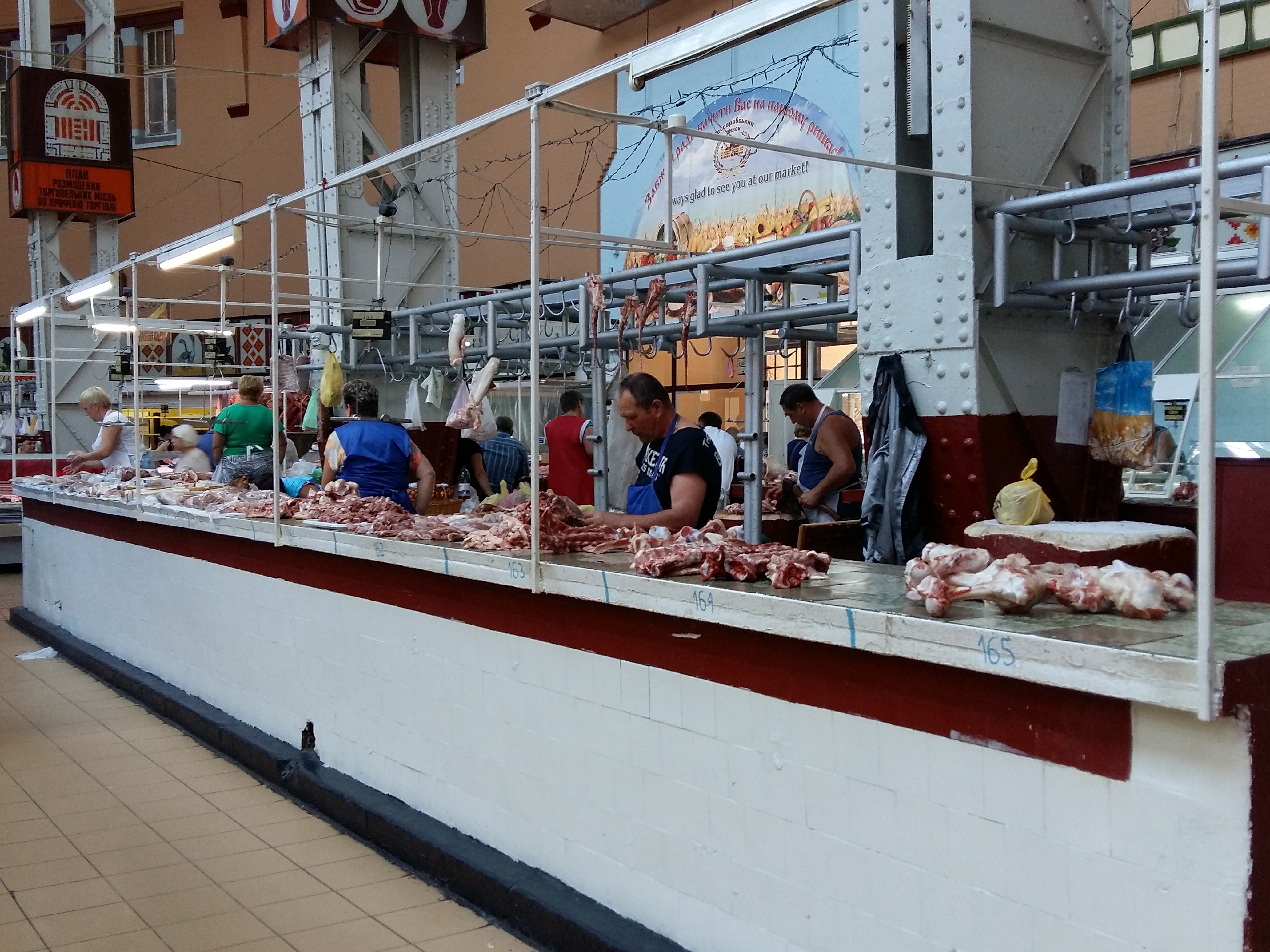 Περπατώντας ανάμεσα στους πάγκους διαπιστώνω πως μπορείς να βρεις σχεδόν τα πάντα. Βάζα με τουρσιά κάθε είδους, κρέατα, ψάρια, πουλερικά, αυγά, φρούτα χύμα και φρούτα σε πρόχειρες συσκευασίες από πλαστικό και νάιλον, λαχανικά, μαύρο χαβιάρι, κόκκινο χαβιάρι, τυριά, αποξηραμένα ακτινίδια και ιβίσκοι, και βεβαίως λαρδί Ουκρανίας, το οποίο θεωρείται το καλύτερο στον κόσμο. Εκτός από είδη διατροφής, εδώ μπορείς να βρεις και μια τεράστια γκάμα ανθέων, αλλά και κιόσκια με ξύλινους πάγκους για φαγητό.