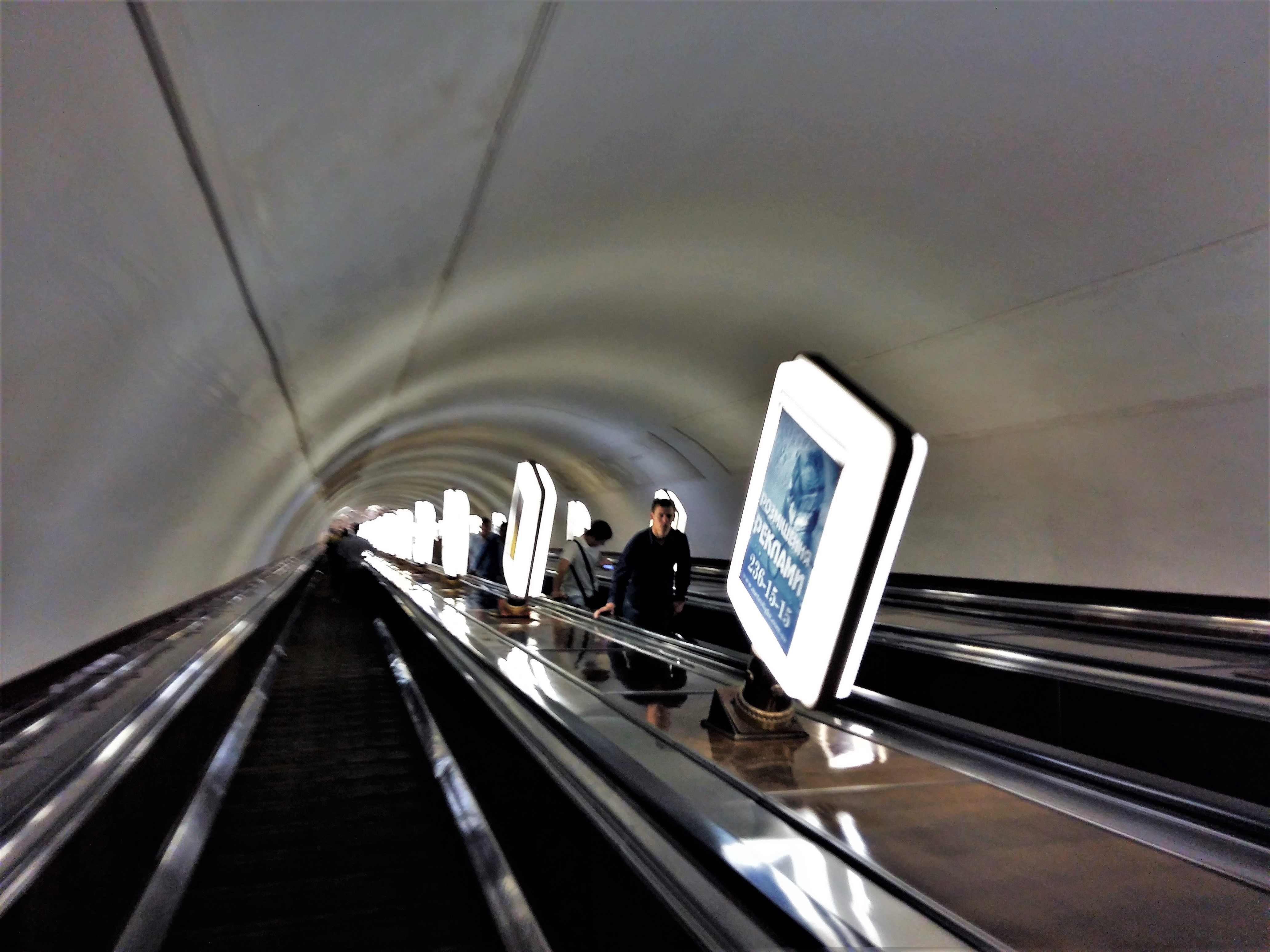 Η ανάβαση και η κατάβαση είναι ολόκληρη διαδρομή. Στέκομαι στη μία από τις τρεις διαδοχικές κυλιόμενες σκάλες που χρησιμοποιώ, πέντε ολόκληρα λεπτά. Οι φωτιζόμενες διαφημιστικές πινακίδες εκπέμπουν ένα δυνατό φως, ικανό ώστε να αντιληφθεί κάποιος το βάθος της ανάβασης και κατάβασης.
