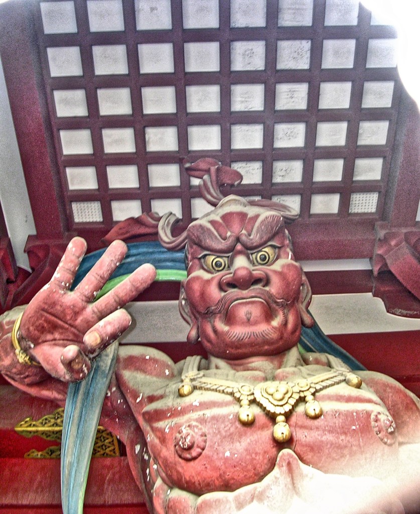 Παρασκευή 10 Μαΐου 1996, απόγευμα, Τόκιο. Προορισμός μου είναι ο αρχαιότερος ναός της πόλης, ο Σένσο-τζι ή Κάνον, στην Ασακούσα, συνοικία που διατηρεί την ατμόσφαιρα της παλιάς πόλης, ή τουλάχιστον ό,τι απέμεινε από αυτήν μετά τους βομβαρδισμούς κατά τον Δεύτερο Παγκόσμιο Πόλεμο, οι οποίοι εξαφάνισαν τη χαρούμενη όψη που τη χαρακτήριζε όταν αποτελούσε επίκεντρο κάθε είδους ψυχαγωγίας, στεγάζοντας από θέατρα Καμπούκι μέχρι οίκους ανοχής. Κατεβαίνω στον σταθμό Ασακούσα του μετρό, στρίβω στη Λεωφόρο Καμινάρι-μον ντόρι και σε λίγα μέτρα αντικρίζω την ομώνυμη «Πύλη του Κεραυνού», την Καμινάρι-μον. Αν και τσιμεντένια, από μακριά μοιάζει ξύλινη. Καθόλου παράξενο, αφού καταστράφηκε το 1865 από πυρκαγιά και ανακατασκευάστηκε το 1960. Στη δεξιά πλευρά της στέκεται το άγαλμα του θεού των Ανέμων Φουτζίν και στην αριστερή του θεού του Κεραυνού Ραϊτζίν. Στην πίσω πλευρά στήθηκαν το 1978, στην 1350ή επέτειο ανεύρεσης του εδωλίου της Κάνον στα νερά του Σουμίντα δύο χρωματιστά αγάλματα των θεών Δράκων.