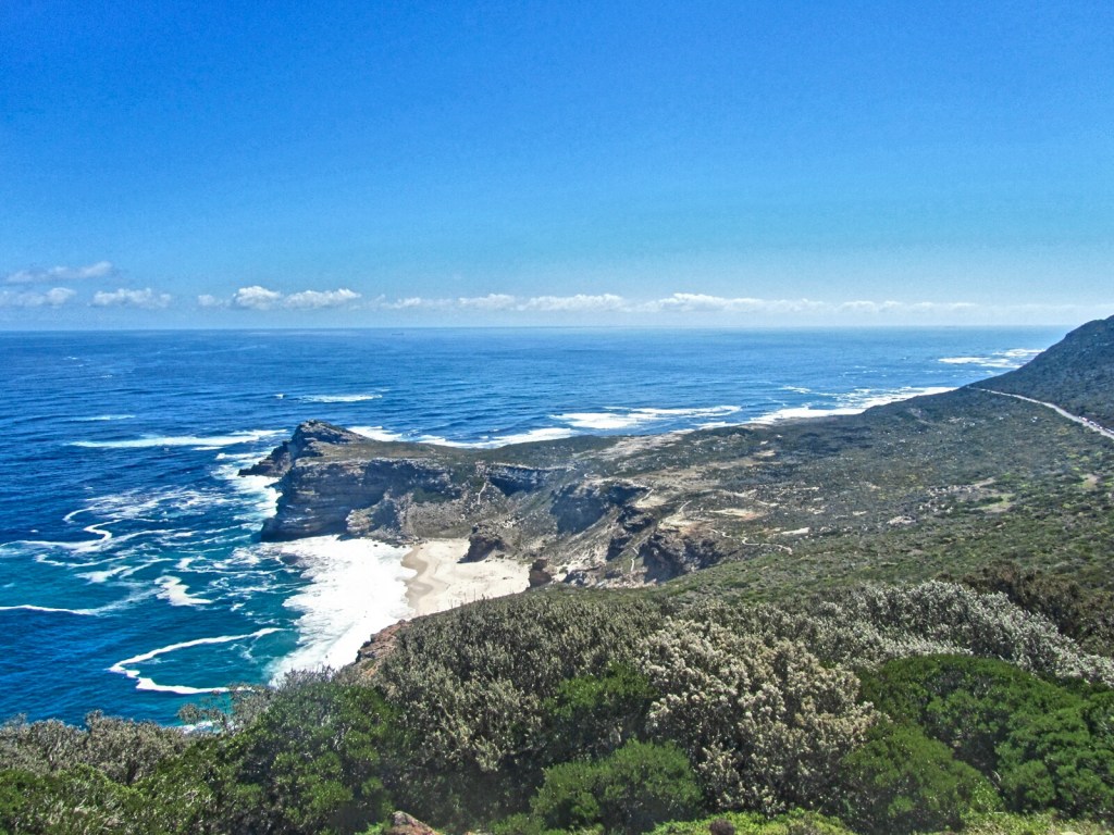 Σε πολύ μικρή απόσταση φτάνω αμέσως μετά στο Ακρωτήριο της Καλής Ελπίδος. Οι απόκρημνες βραχώδεις πλαγιές, οι αμμουδιές ανάμεσά τους, τα ψηλά κύματα, ο δυνατός αέρας στη βάση του γκρεμού που νομίζω ότι θα με σηκώσει ενώ βρέχομαι από τα νερά των κυμάτων που σπάνε στα βράχια μου προκαλούν δέος. Δεν με ενδιαφέρει ούτε να κολυμπήσω κάπου κοντά, ούτε να κάνω σέρφινγκ, ούτε τίποτα άλλο. Μόνο να απολαύσω την ιδιαιτερότητα του τοπίου.