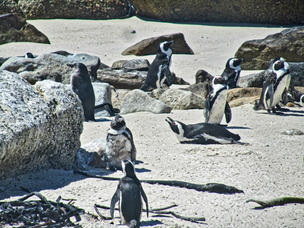 Ο πιγκουίνος του ακρωτηρίου ή πιγκουίνος της Νότιας Αφρικής έχει δημιουργήσει εδώ από τη δεκαετία του 1980 μία από τις δύο αποικίες του στο έδαφος της Νότιας Αφρικής αποτελώντας πόλο έλξης χιλιάδων τουριστών. Το γιατί δεν αργώ να το καταλάβω. Πλησιάζω τα ύψους περίπου 60 εκατοστών πτηνά στα 10 μέτρα, στα 5, στα 2… Κάποια στιγμή φτάνω στο 1 μέτρο απόσταση κι όμως δεν δείχνουν καθόλου να ενοχλούνται. Καλού – κακού, δεν πλησιάζω σε μικρότερη απόσταση από τα 70 με 80 εκατοστά. Εκεί δείχνουν μια νευρικότητα και δεν έχω πλησιάσει άλλοτε σε τόσο κοντινή απόσταση πιγκουίνο, οπότε δεν έχω ιδέα πώς αντιδρούν εάν επιχειρήσεις να τα χαϊδέψεις. Ούτε πάλι θέλω να τα φοβίσω. Πολλά ζώα νιώθουν έντονο στρες στις μικρές αποστάσεις και τη σωματική επαφή με ανθρώπους. Υπολογίζεται ότι ζουν στη Νότια Αφρική 18.700 ζευγάρια, ανάμεσά τους και οι συγκεκριμένοι αφρικανικοί πιγκουίνοι, που περιφέρονται ανάμεσα σε εντυπωσιακούς χαμηλούς βράχους γρανίτη. Εκτός από πιγκουίνους, πετυχαίνω σήμερα και αντιλόπες και στστρουθοκαμήλους, δυστυχώς όμως όχι και φάλαινες, καθώς εμφανίζονται μετά τον Ιούλιο και για λίγους μήνες.