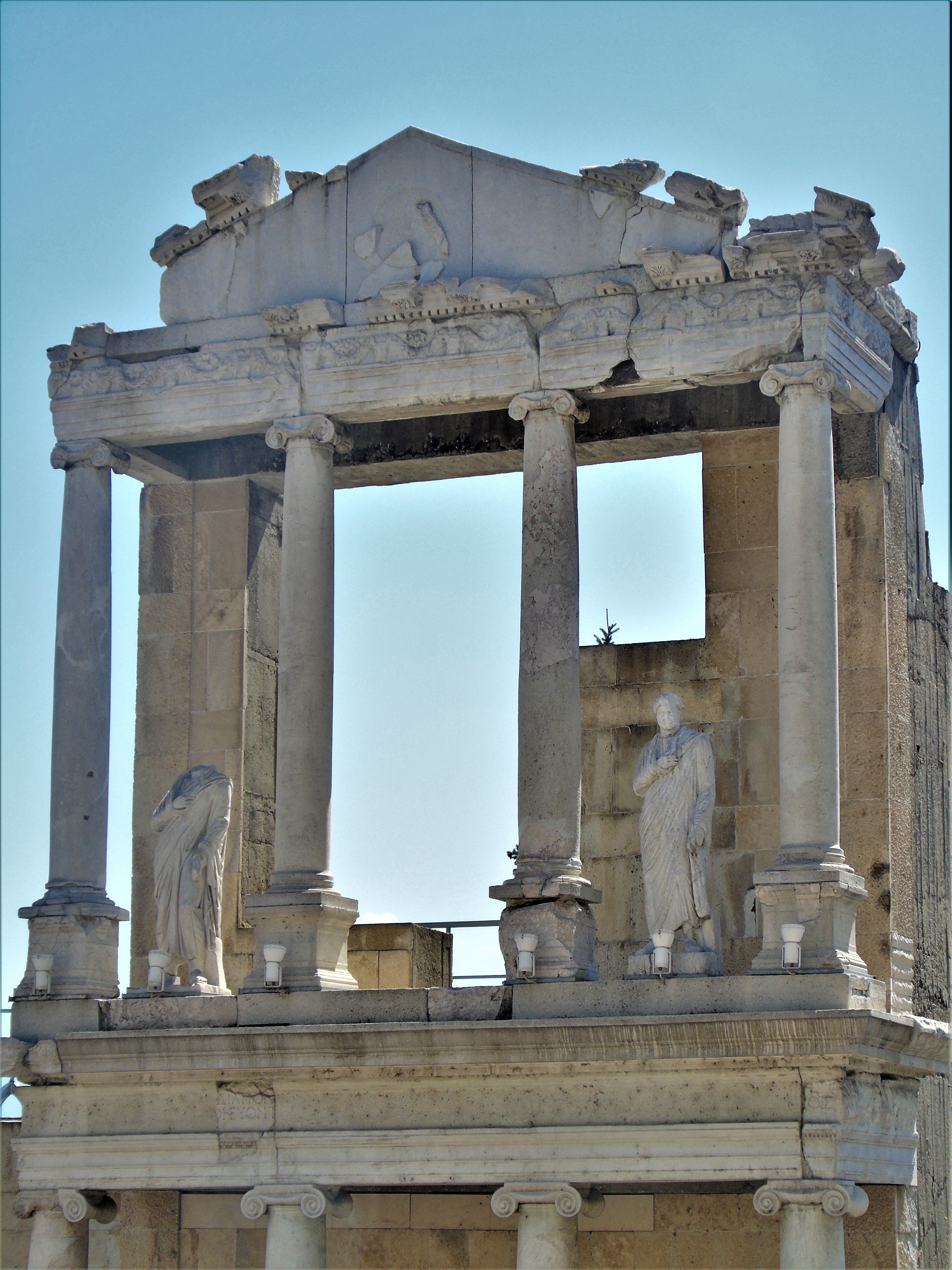 Από τα λαμπρότερα κτήρια της περιόδου του δεύτερου από τους πέντε καλύτερους αυτοκράτορες που θα αναγνωρίσει μαζί με Νέρβα, Αδριανό, Αντωνίνο Πίο και Μάρκο Αυρήλιο ο Μακιαβέλι στις «Διατριβές για τα πρώτα δέκα βιβλία της Ιστορίας του Τίτου Λίβιου», η οποία θα διαρκέσει έως τον θάνατό του το 117, προτού κλείσει τα 64, είναι το θέατρο στη Φιλιππούπολη.